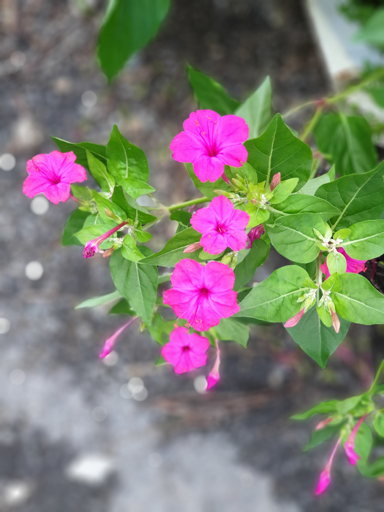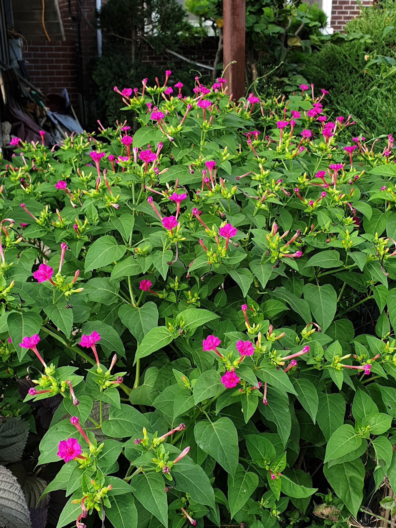 동네 철길 너머 아직은 논밭이 있는 시골길을 오후 늦은 시간에 산책하다 만난 진분홍색 분꽃, 그동안 밤에 만났던 색색의 화려한 분꽃이 아니라 단색의 수수하고 수줍은 고향 꽃이었습니다. 수많은 가지를 뻗고 수북하게 많은 꽃을 피운 분꽃을 보고 서서 저는 왜 어린 시절 소꿉놀이하던 ‘분꽃 누나’를 떠 울렸을까요? 더 나아가 분꽃을 닮은 한 수녀를 떠올렸을까요?