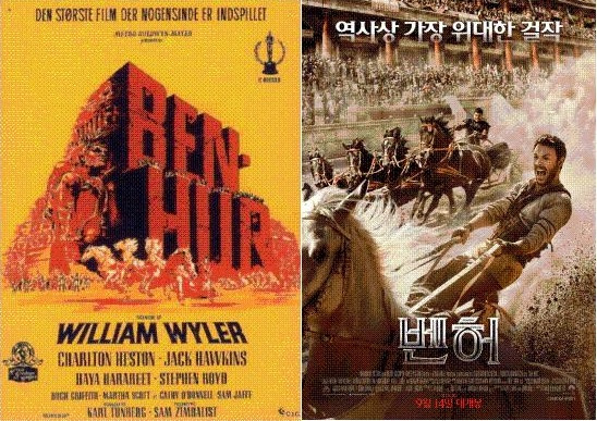 <벤허>를 만든 유명한 윌리엄 와일러 감독의 말입니다. 영화 <벤허>는 1953년 로마의 휴일로 세계적인 명장의 반열에 오른 윌리엄 와일러 감독이 제작 기간만 해도 무려 10년, 당시에는 상상하기 어려운 1,500만 달러라는 천문학적인 제작비를 쏟아부어 만든 대작으로 1959년 상영되었습니다. 이런 내용은 세계영화사에 기록되어 있습니다. 1960년 아카데미 작품상을 비롯해 감독상, 남우주연상, 남우조연상, 촬영상, 음악상, 미술상, 의상디자인상, 음향상, 편집상, 특수효과상 들 11개 부문을 석권해 종전까지 <바람과 함께 사라지다>가 갖고 있던 10개 부문 수상 기록을 깨뜨렸고, 훗날 아카데미상 11개 부문을 수상한 제임스 카메론 감독의 <타이타닉>, 피터 잭슨 감독의 <반지의 제왕 : 왕의 귀환>과 함께 최다 부문 수상 기록이 유지되고 있습니다.