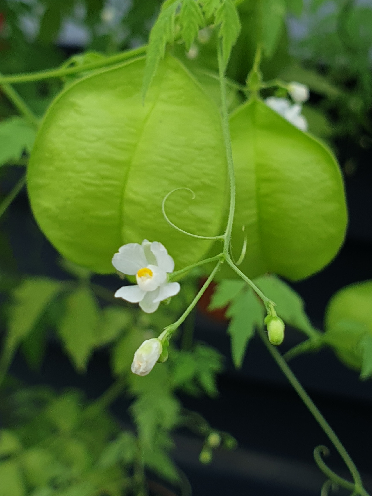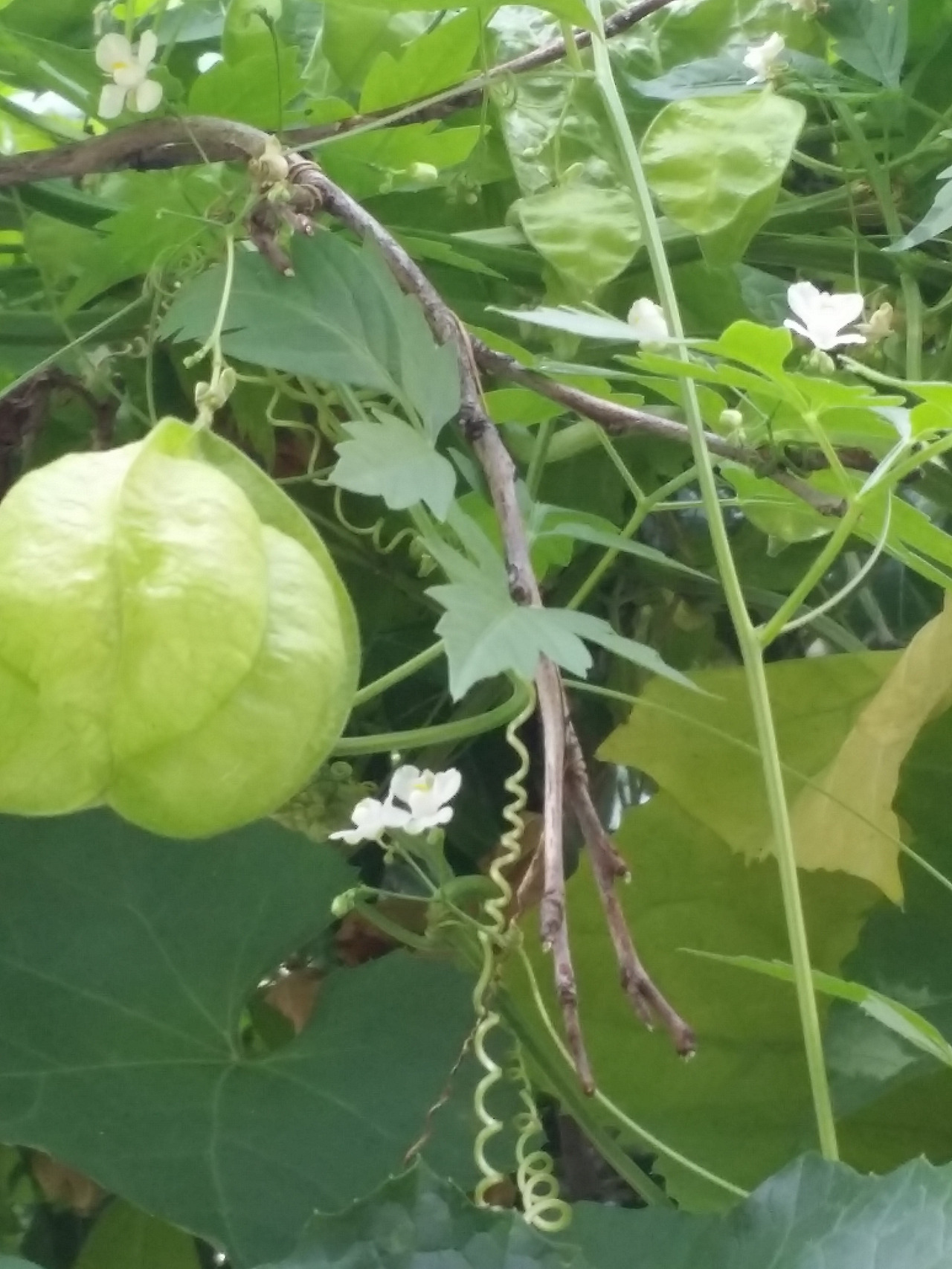 위에 있는 꽃 사진은 그 할아버지네 작은 정원의 나무를 타고 올라간 풍선덩굴이란 풀꽃입니다. 꽃은 작고 앙증맞게 귀엽습니다. 마치 작은 흰나비 두 마리가 얼굴을 맞대고 키스를 하는 모양입니다. 풍선덩굴이란 이름은 이 풀꽃을 보기만 해도 고개를 끄덕끄덕하실 것입니다. 어릴 적 껌조차도 귀했던 시절 껌을 대신해 주었던 꽈리처럼 생긴 열매를 맺는데, 꽈리보다는 크기가 더 커 마치 조그마한 풍선이 허공에 매달려 있는 듯이 보입니다. 꽃말을 ‘어린 시절의 추억’, 혹은 ‘당신과 날아가고파’라는 의미를 사람들이 주었습니다. 둘 다 그럴듯한 꽃말입니다. 어릴 적 꽈리를 불던 추억을 떠올리고, 풍선을 타고 사랑하는 사람과 함께 행복의 나라로 날아가고 싶은 열망을 담은 것이겠습니다.