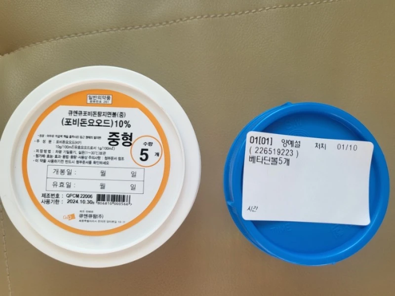 그래도!!! 응가하면 베타딘 용액 주신 것 두 방울 정도 좌욕기에 떨어뜨려서 좌욕은 꼭 빠짐없이 시켜주었어요. 베타딘볼은 1인실 가니까 주셨어요. 저렇게도 병원에서 주시더라고요. 지금도 집에서 응가 후에는 좌욕기에 베타딘 용액 몇 방울 넣어서 좌욕시킨답니다. 집중치료기간에는 감염 진짜 조심해야 한다는 말 명심하고 또 명심했던 기억이 납니다.
