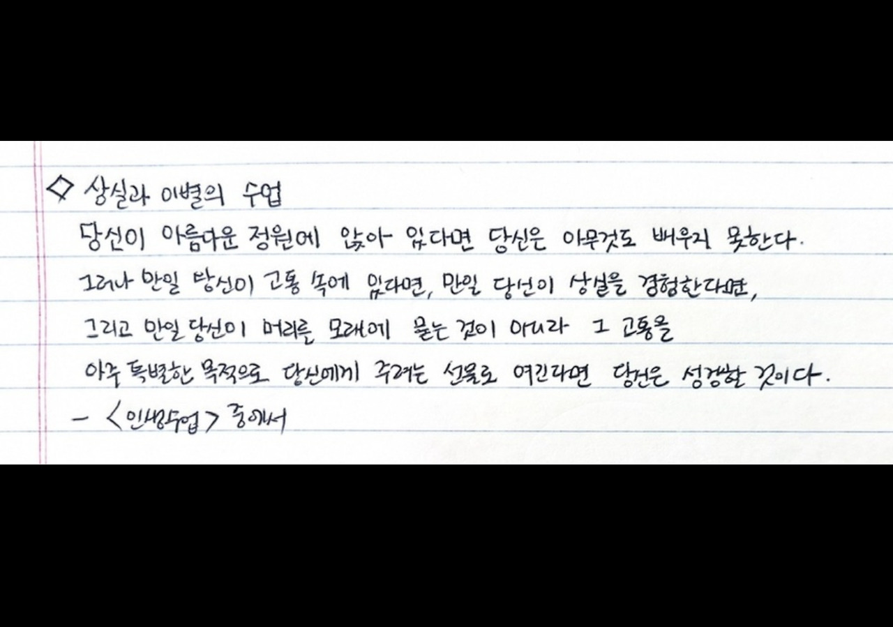 고통, 상실이라는 감정을 하루를 보내면서 조금이라도 느낀다면 분명 그것을 느끼는 사람은 그날의 소중함을 알 것이다. 소아암을 치료중인 자녀의 보호자들은 저마다 가슴속 한 가운데 자녀를 잃을지도 모른다는 불안감을 가지고 있을 것이다. 그 마음의 크기는 다르겠지만. 자녀를 잃을지도 모른다는 고통이 한 번씩 찾아올 때마다 지금 보내고 있는 시간이 다르게 느껴질 것이다. 나도 그랬다. 아니, 지금도 그렇다. 인스타그램을 통해 자녀를 떠나보낸 소식을 듣거나, 병원에 있을 때 코드블루 방송을 들을 때면 심장이 쿵하고 내려앉는 것만 같았다. 잠시 잠깐 든 생각이었지만 그것은 분명 나에게는 고통이었다.