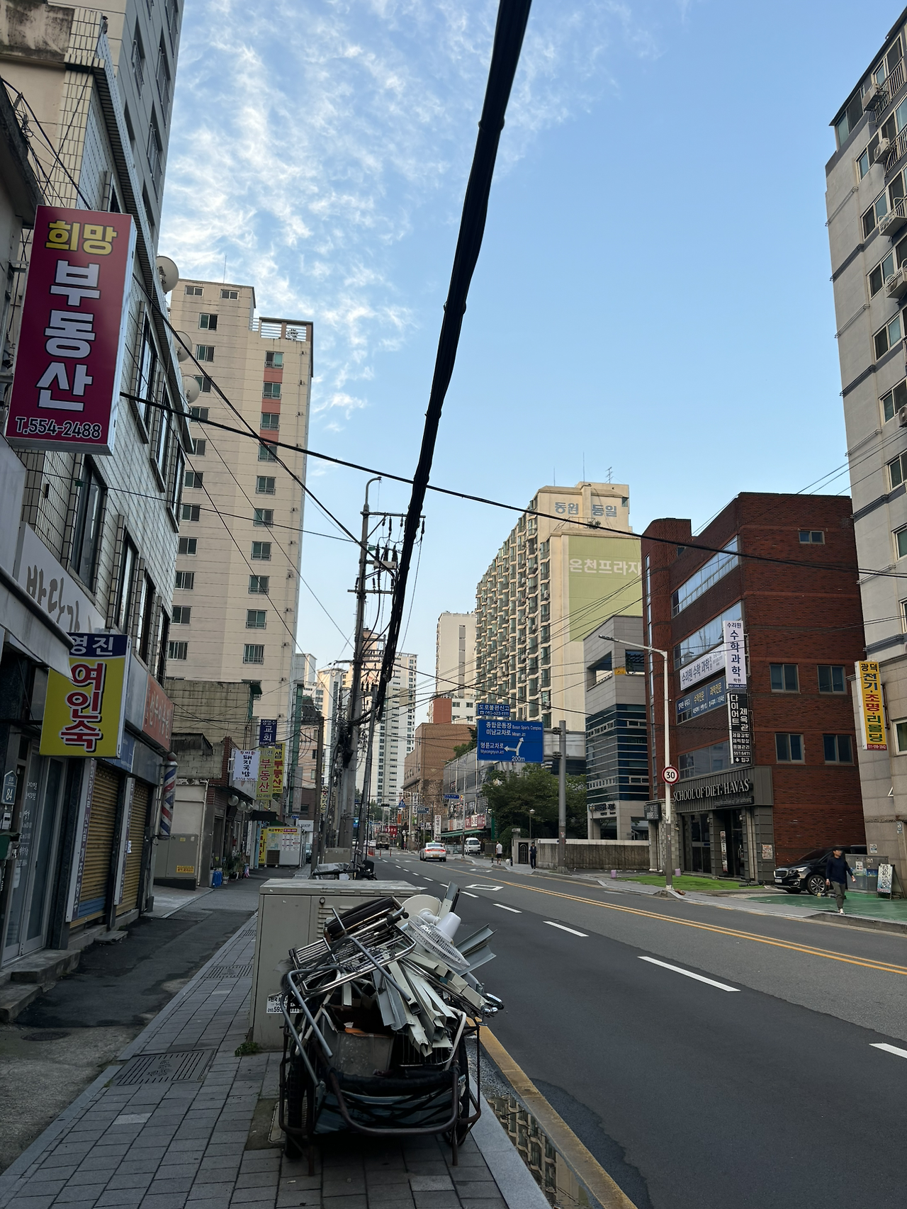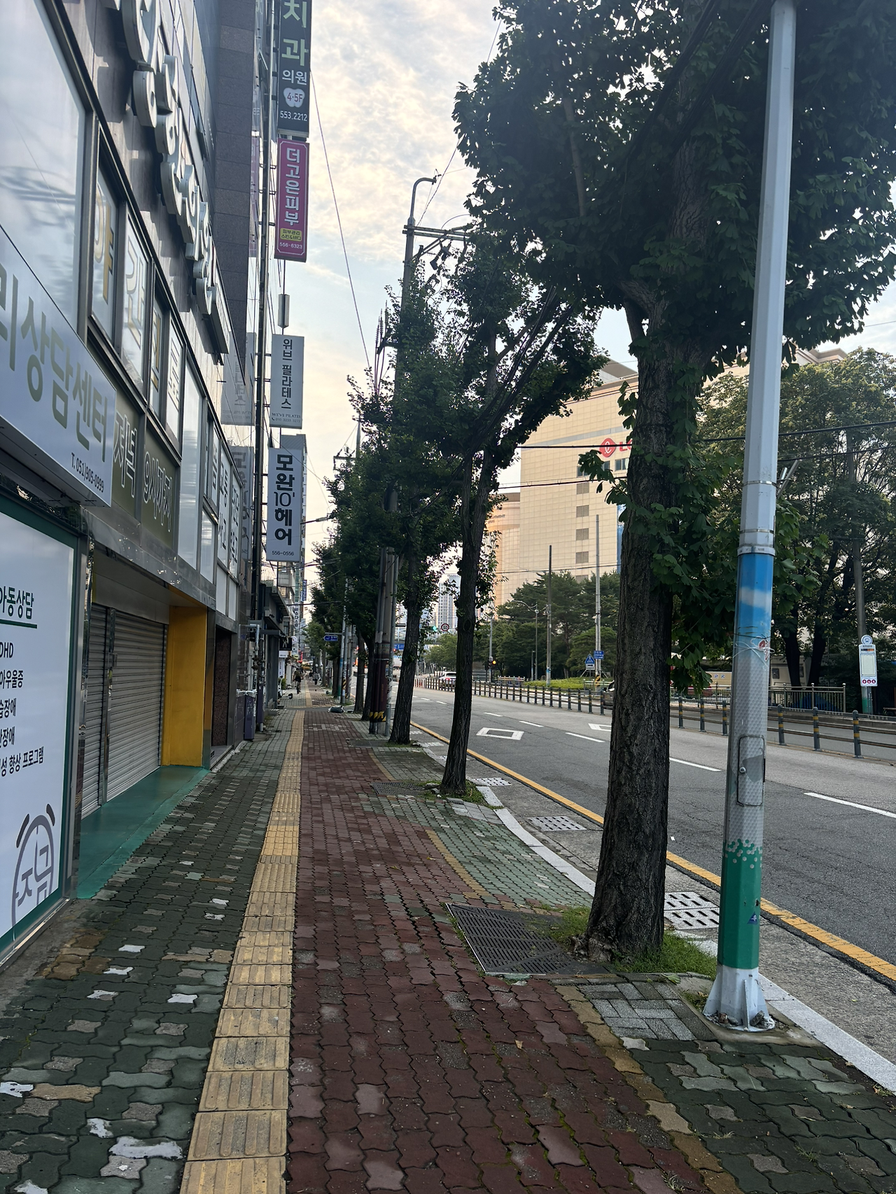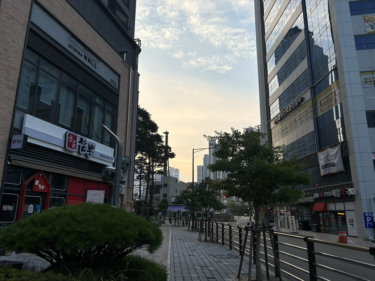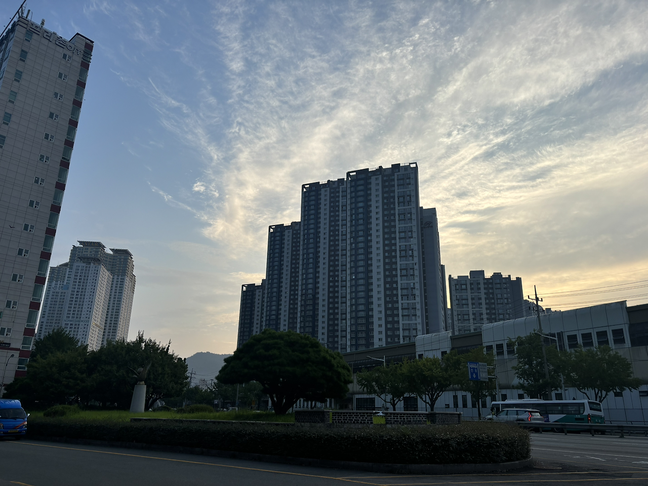 제가 출근할 때와는 다른 풍경이었습니다. 저희 가족이 자주 가는 돼지국밥집 앞을 지나는데 그 시간에 부엌에서 이모는 벌써 주방일을 하고 계셨습니다. 조금 더 걸으니, 탑마트가 보였습니다. 마트 문을 활짝 열고, 가게 안에도 형광등이 켜져 있었습니다. 천천히 걸으면서 사진도 찍고, 하늘도 올려다 봤습니다. 강아지와 산책하는 분들을 자주 만났습니다. 참 부지런하시다는 생각이 들었습니다. 더 걸으니, 건물 청소하시는 분들이 밀대로 바닥을 닦는 모습을 봤습니다. 막 도착한 버스를 타기 위해 정류소로 뛰어 가는 남자분도 제 눈에 들어왔습니다. 가장 인상적이었던 장면은 할머니 할아버지가 두 손을 꼽잡고 건물안으로 걸어가시는 뒷모습을 발견했습니다. 어떤 건물인가 하고 올려다봤더니, 요양병원이었습니다. 저도 언젠가는 남편의 손을 꼭 잡은 모습을 생각하니, 순간 가슴이 뭉클해졌습니다. 금새 눈시울도 촉촉해졌고요. 아침시간에 평소와 달리 여러 장면을 제 눈으로 볼 수 있었습니다.