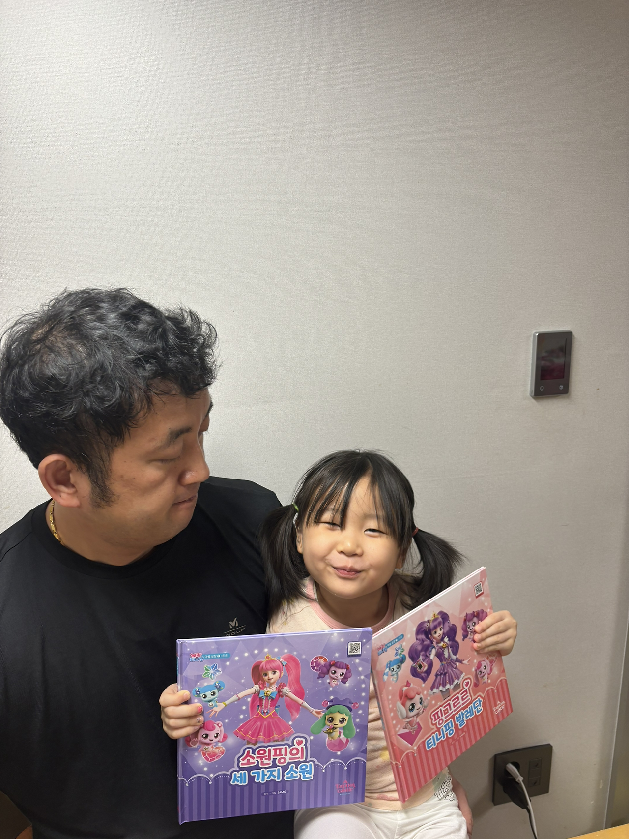 예설이가 무럭무럭 자라고 있습니다. 키가 90센치였는데 지금은 114센치까지 컸어요. 몸무게도 15킬로에서 20킬로가 되었구요. 어린이집에서 얼마전에는 미니 올림픽을 열어주셔서 역도, 팬싱과 같은 종목들을 경험해보기도 했고 박물관 견학도 다음주에 간다고 해요. 친구들과 일상을 보내며 잘 생활하고 있는 예설이 기특해요. 오늘 병원에서 따금 피검사도 잘했고요. 하나씩 경험해보면서 알아가는 재미를 만끽하고 있습니다. 예설이 곁에서 항상 응원할게요. 양예설 화이팅! 소아암 치료받는 모든 아이들도 화이팅!! 엄마 아빠들도 화이팅!!!