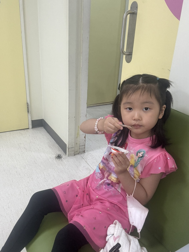 외래에 문의하니 감염이 될 수 도 있으니 응급실에 가라고 하셔서 오후 늦게 소아 응급실에 예설이랑 둘이서 왔습니다.