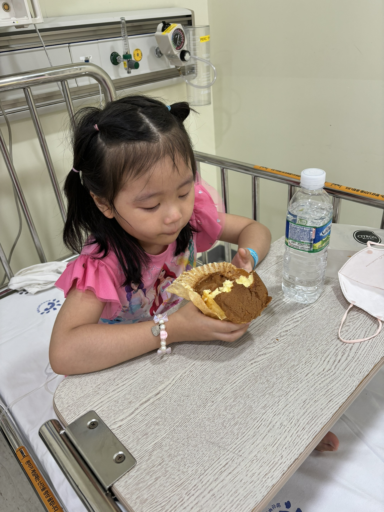 카스테라 반쯤 먹다가 케모포트와 주사바늘을 하게 되어 남은 카스테라 안먹을지 알았는데 눈물 닦고 나서 다 먹더라구요^^
