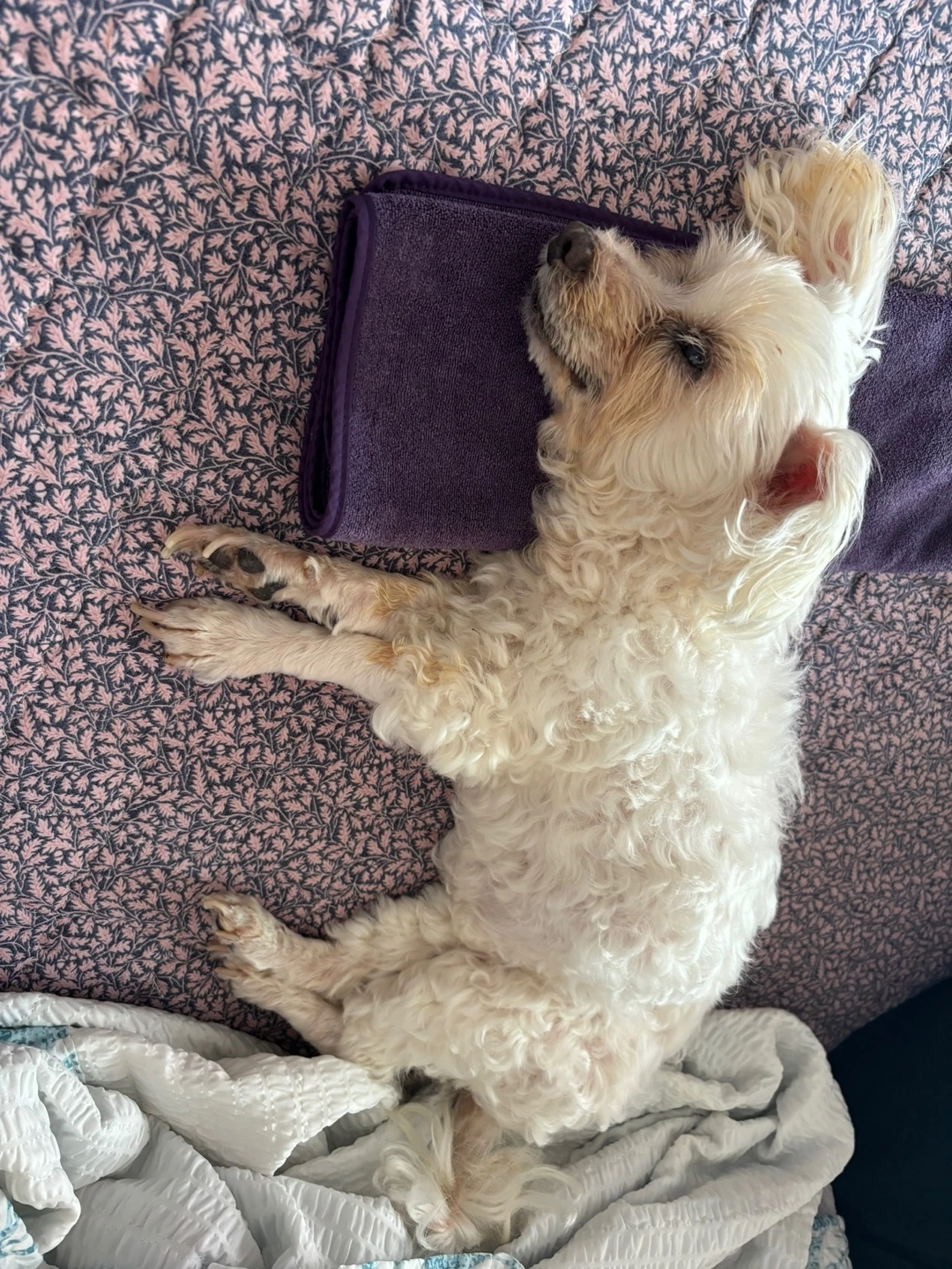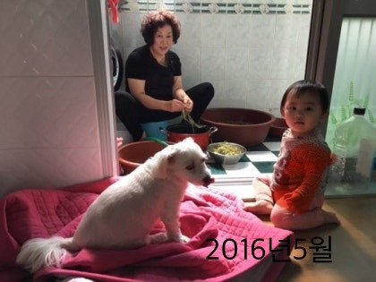결혼하고 남편과 송이와 셋이서 살았다. 송이가 혼자서 집에 있는 시간이 많아서 너무 짖었다. 어머니가 시츄 아롱이와 요크셔테리어 영국이를 키우고 계셨는데도 송이를 키워주셨다. 어머님의 보살핌을 받으며 같이 잘자랐다. 몇년 전 아롱이가 떠났고, 2년 전 영국이가 떠났다. 심리적으로 불안해했던 송이 곁이 어머님은 마지막까지 지켜주셨다. 어머님은 송이의 빈자리를 많이 힘들어하셨다.