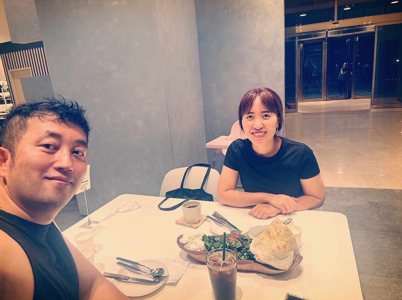 아이들을 어머님께 맡겼습니다. 오랜만에 모처럼 둘이서 데이트하라시는 배려에 감사했습니다. 남편과 내가 먹고 싶었던 포도 샐러드 같이 먹고 영화보기로 했습니다. 소미 아버님의 연락받고 남편은 저와 한 시간 같이 시간 보내고, 가셨습니다. 덕분에 저는 혼자만의 시간을 가졌습니다.