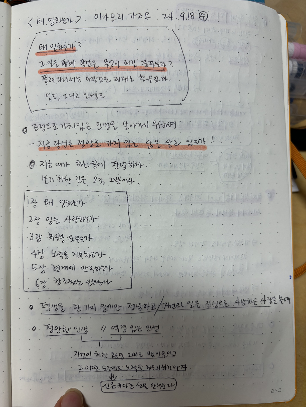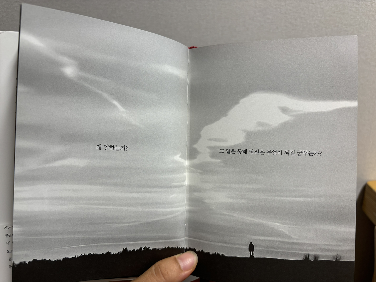 한의원 부원장님이 책을 보시고는 "글쵸. 왜 일하는지 알아야 하죠" 하셨다.