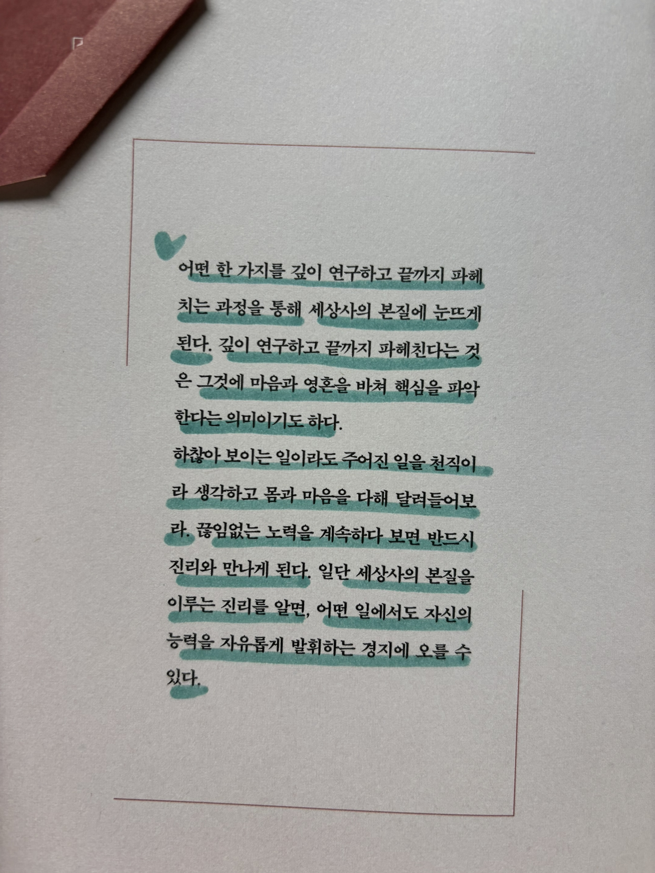 2. 어떤 한 가지를 깊이 연구하고 끝까지 파헤치는 과정을 통해 세상사의 본질에 눈뜨게 된다.