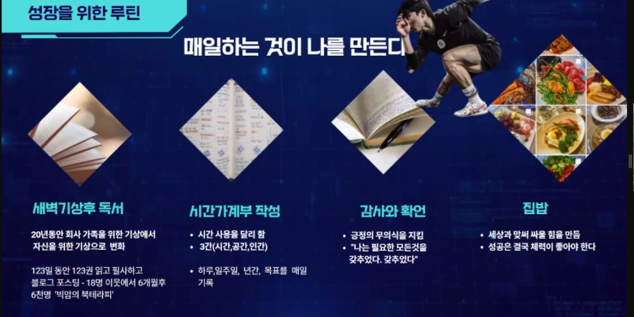 오승하 작가님 저자 특강을 듣고, 사인에 참석했다. 사인회에 다녀와서 책을 읽기 시작했다. 국가대표 조상혁 선수와 엄마인 오승하 작가님의 이야기가 궁금했다. 책을 펼쳤다. 저자가 20대에 만난 나폴레옹 힐의 <놓치고 싶지 않은 나의 꿈 나의 인생>에 대한 이야기로 시작한다. 이 책은 조상혁 선수가 부상으로 꿈을 포기해야 하는 순간이 왔을 때 다시 꿈을 꺼낼 수 있게 도움을 준 책이었다. 스케이트 분야에서 세계적인 선수가 되겠다는 큰 꿈을 품고, 상상을 현실로 이루기 위한 지루한 반복적인 일상을 살아냈다. 조상혁 선수의 노력도 있었지만, 오승하 작가님은 20년간 하루에 4시간 잠을 잤다고 하셨다. 아들의 뒷바라지를 위해 새벽 4시에 하루를 시작하였다. 둘째가 나이가 어려서 많이 힘들었을텐데 아이들 도시락까지 챙겨가며 엄마의 역할을 해내신 모습이 존경스러웠다. 하루 삼시새끼를 집밥으로 챙겨주면서 간, 쓸개 내놓고 녹즙 아르바이트 하루 3시간을 하면서 고객 150명 유치 목표를 해냈다.