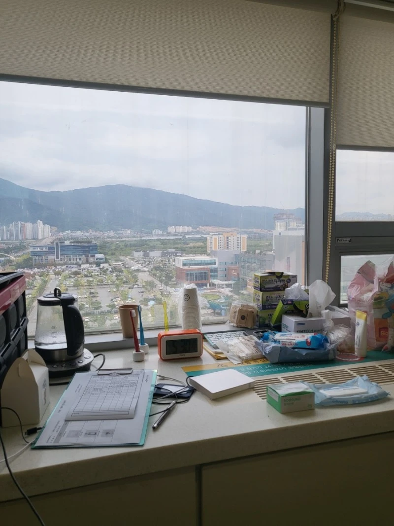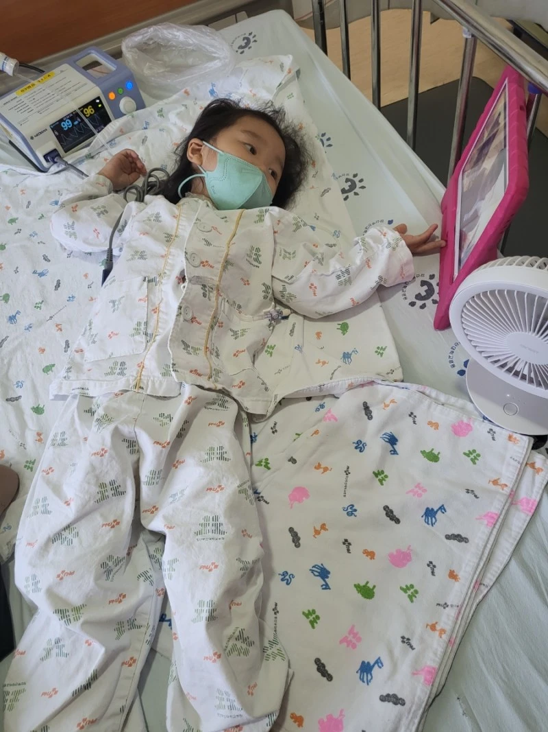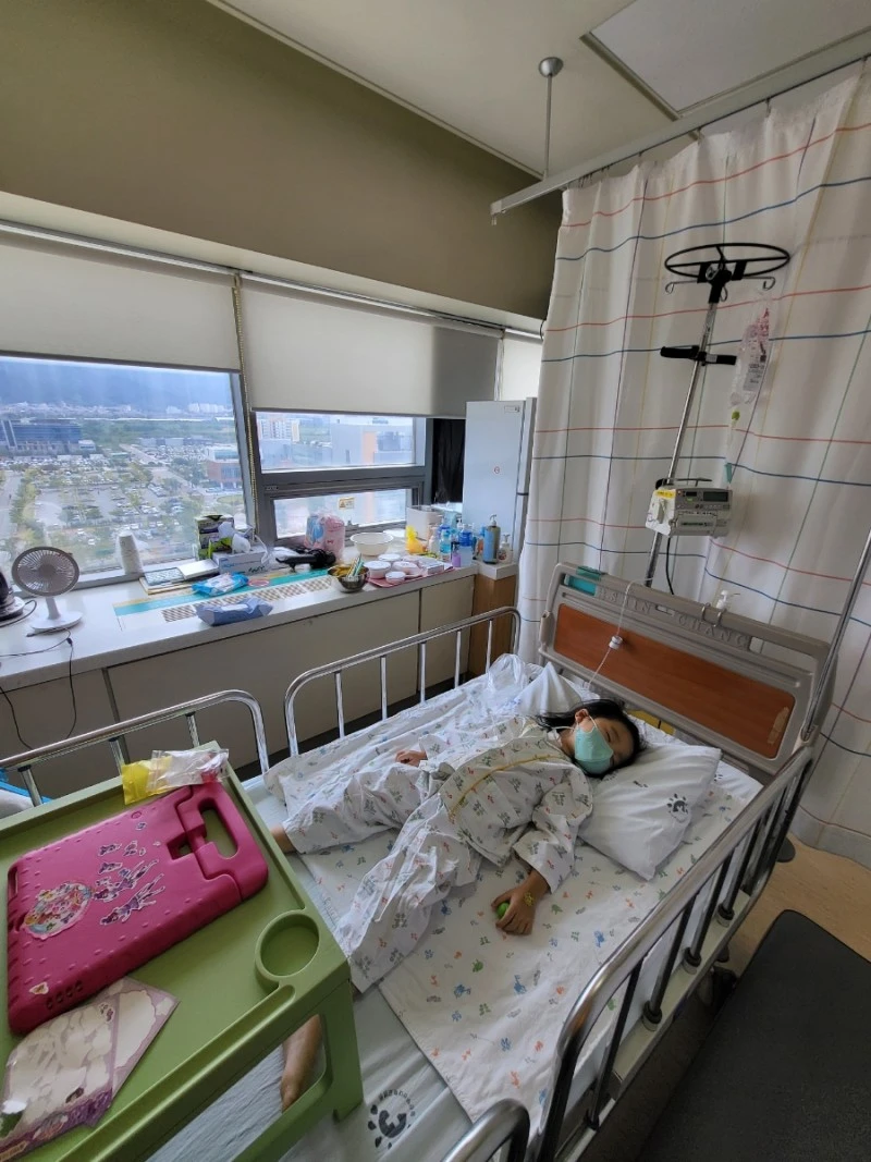 아참, 창가 자리가 나서 다른 방으로 옮겼었어요. 밖으로 나갈 수는 없지만 하루를 마치고 창밖을 내다볼 수 있으니 한결 좋았습니다. 길고 긴 집중치료가 언제 끝이 날까 생각했었는데 그 시간이 오더라고요. 척수항암 하고 간단하게 물이나 음료는 완전히 정신이 깨었을 때는 구버지는 빨대로 주었어요. 덱사메타손 복용 중이라 먹는 걸 많이 찾기도 했고요. 아이마다 다르니 하은이 컨디션 보시고 음식 조절하시면 좋을 거 같아요. 척수항암하고 나서 모니터 숫자도 주시했던 기억이 납니다. 예설이도 4시간씩 누워있기를 엄청 힘들어했어요. 어쩔 수 없이 패드로 티브이 보여줄 수밖에 없었어요. 시간이 가야 하니까요. 최대한 멀리서 볼 수 있도록 했어요. 관해유도기간이 끝나고 공식입원할 때는 2인실 사용했어요. 넷플렉스를 보여줄 때 티브이로 보여줬던 이유도 패드로 보여주니 손가락으로 프로그램 하나를 가지고 앞에 거 봤다가 뒤에꺼 봤다가 왔다 갔다 하는 거예요. 무엇을 볼지 정하지 못하는 모습 이어졌어요. 예설이가 불편해하는 마음이 고스란히 행동으로 보였어요. 이런 행동은 외래 치료하면서 점점 좋아졌지만 그 당시에는 걱정이 많이 되었답니다.