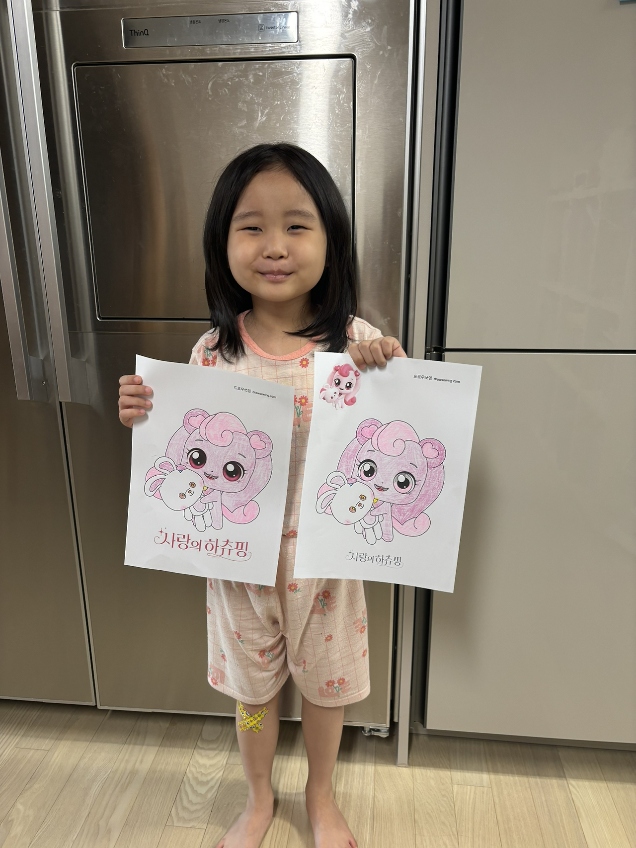 티비를 안보니까, 역시 잘 놀아요!!! 예설이는 예빈이 언니 그림 그릴 때 옆에서 하츄핑 색칠하더라구요.