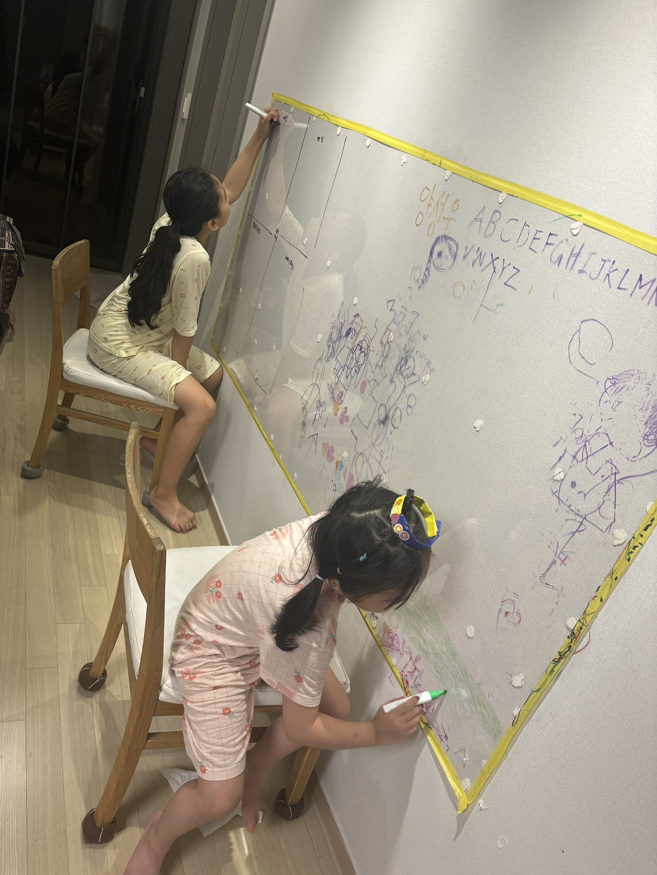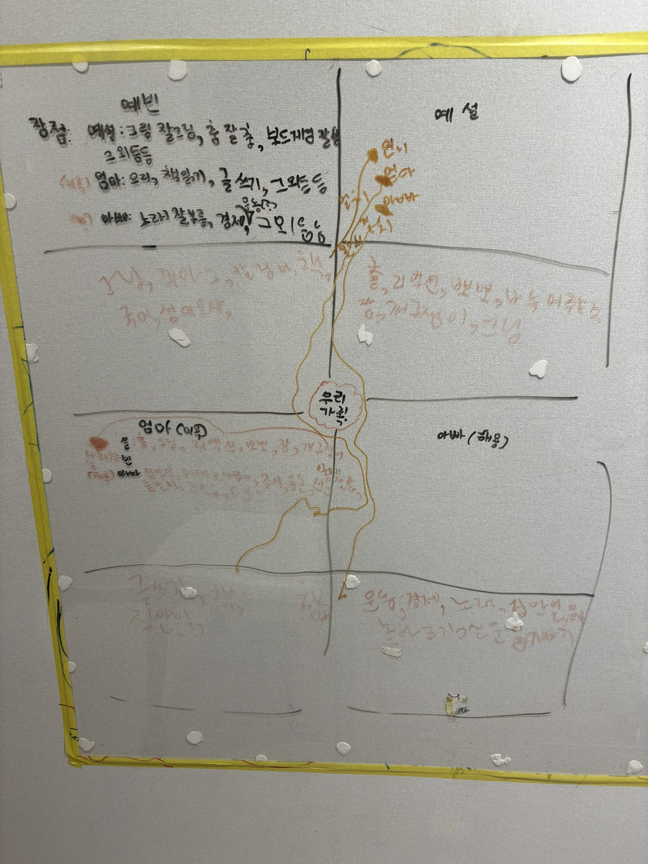 오늘은 아이들과 우리 가족 장점 10가지를 생각해보고 보드판에 기록해봤습니다.