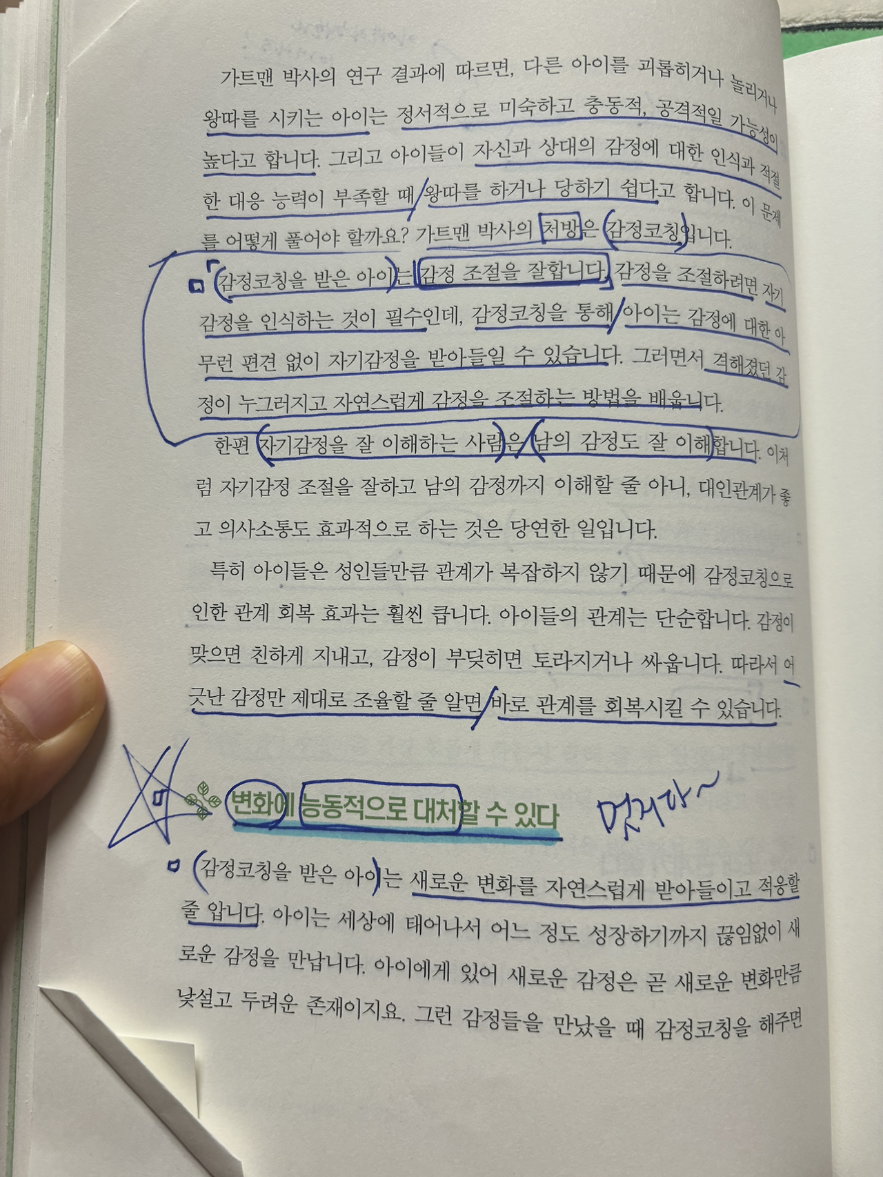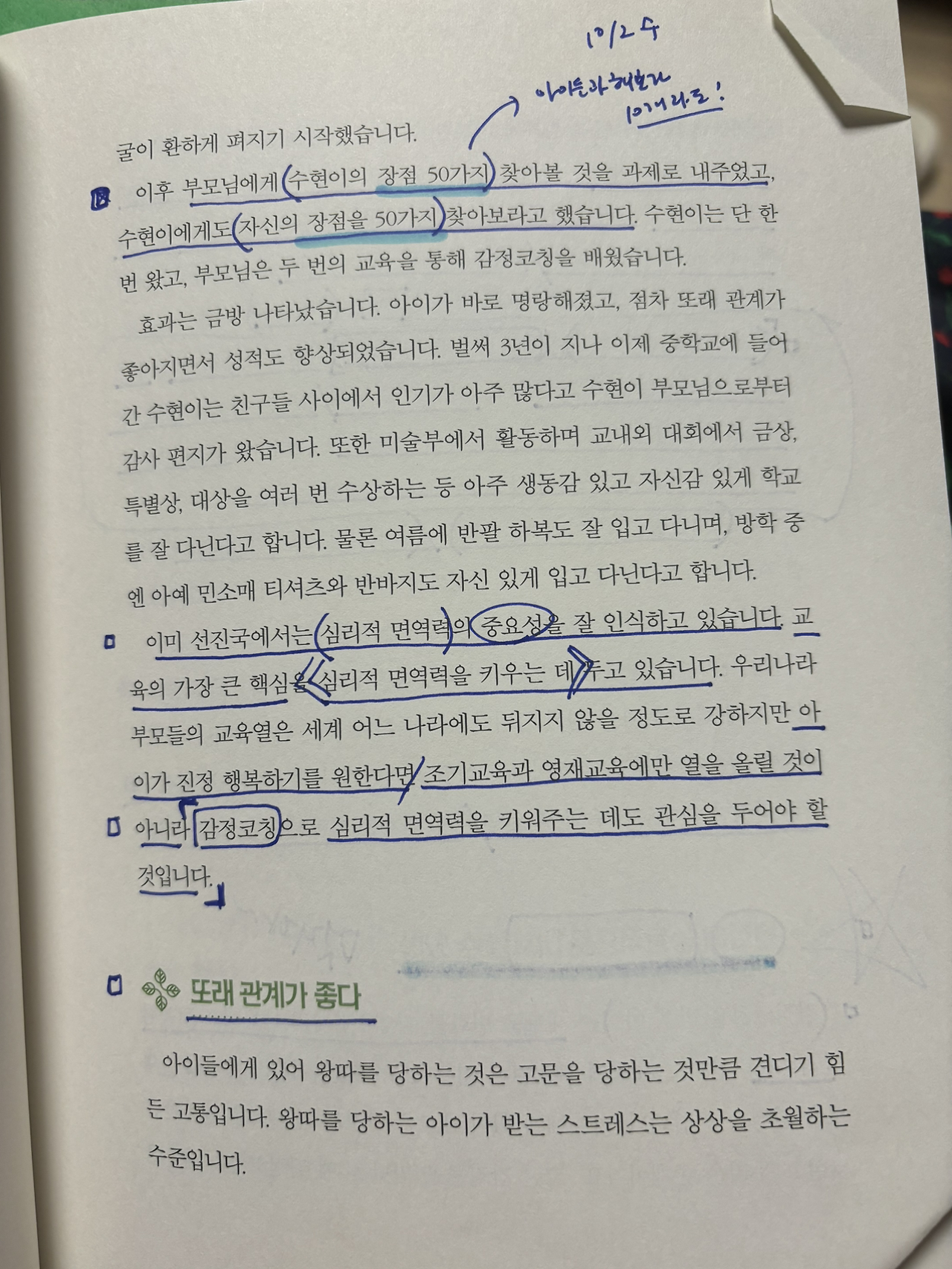 오늘도 자투리 시간을 내서 <감정 코칭>을 읽었습니다. 사무실에서 여경 선배님과 이 책에 대해 잠시 이야기를 나눴습니다. 이 책을 완독하신 선배님은 최성애, 조벽 저자의 다른 책도 읽고 계십니다. 감정이 우리들과 아이들에게 그리고 우리가 하는 경찰 일에도 얼마나 중요한지 배워가고 있습니다. 책도 읽고, 삶에 적용해보고 있습니다.