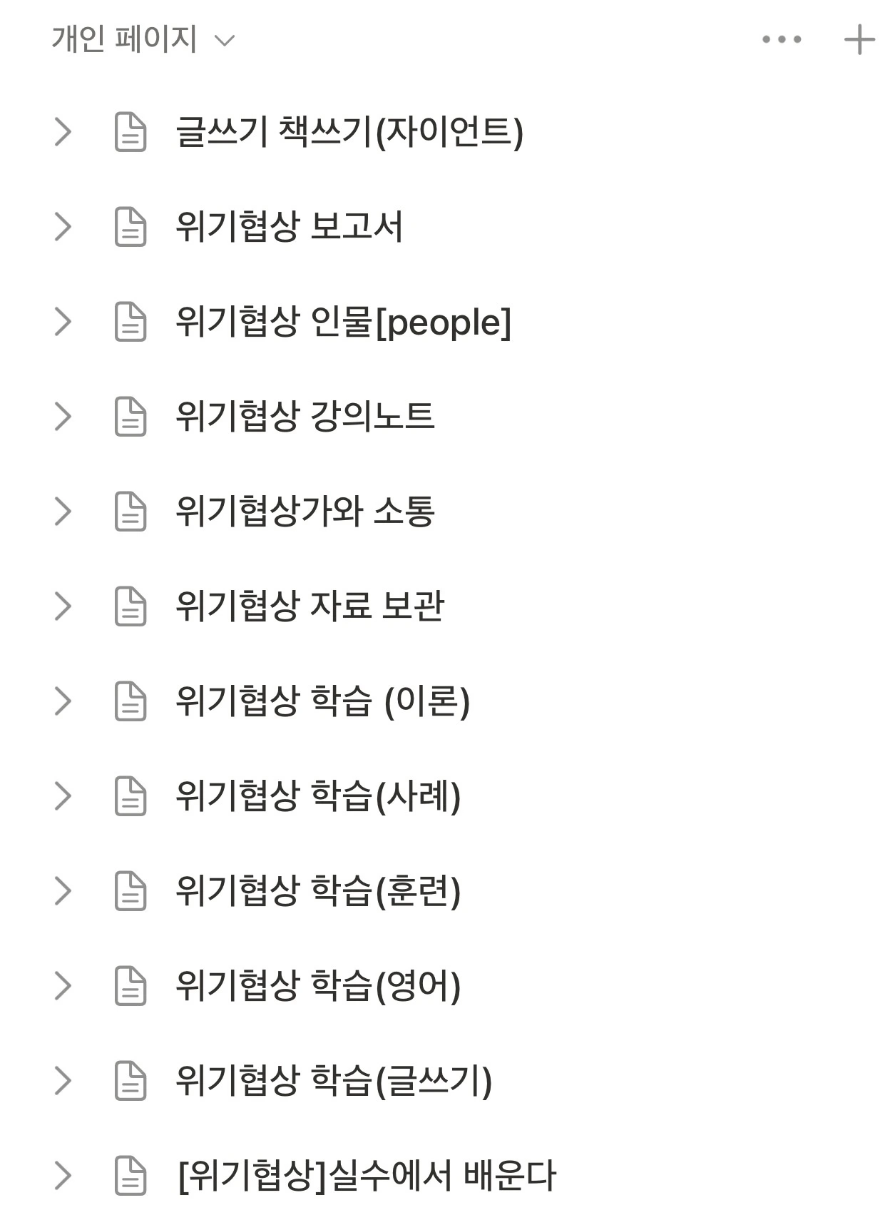 저는 공부를 체계적으로 정리하기 위해 노션을 만들었습니다. ‘협상 이론’, ‘소통 기술’, ‘강의 노트’, ‘멘토 프로필’, ‘현장 보고서’ 등으로 구분하여 종이 자료와 파일을 하나로 맞춰가고 있습니다. 작업은 쉽지 않지만, 그 과정이 곧 ‘전문가가 되어가는 길’이라 생각합니다.