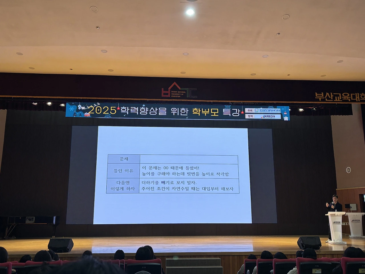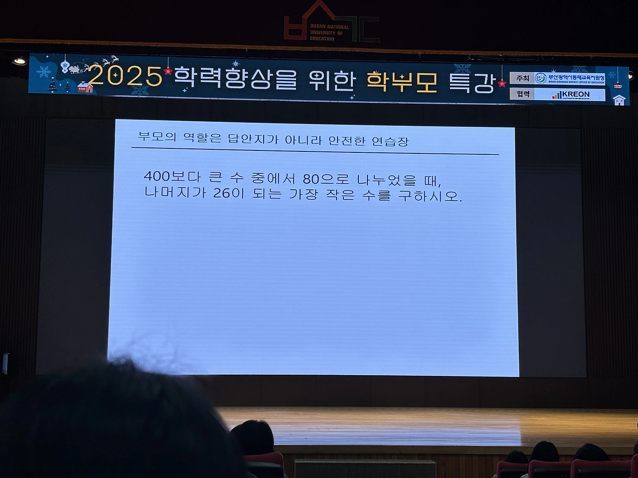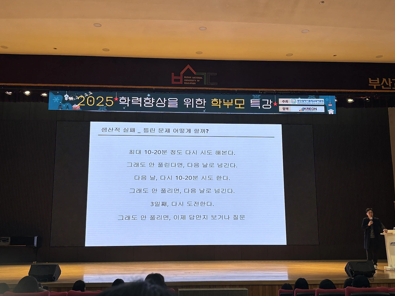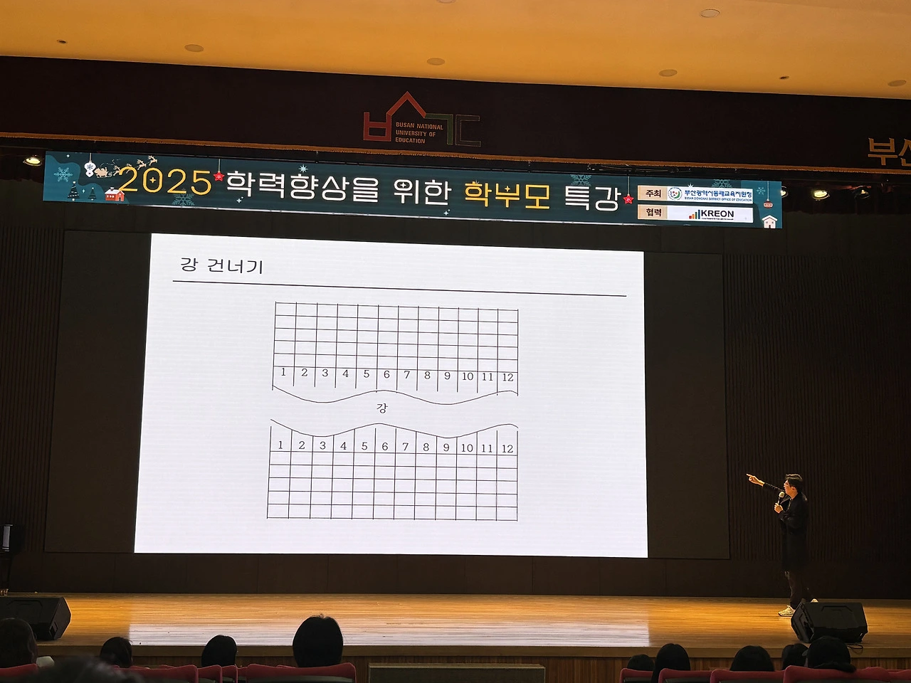 강사는 초등학교 4학년 때, 수학 경시대회에서 대상을 받았다고 교실에서 일어나 소개되었던 순간을 아직도 생생히 기억한다고 했다.