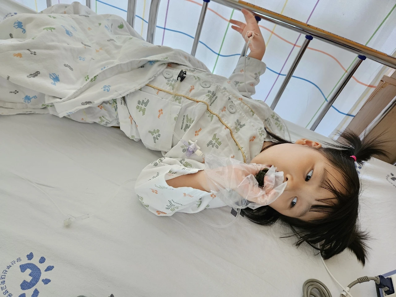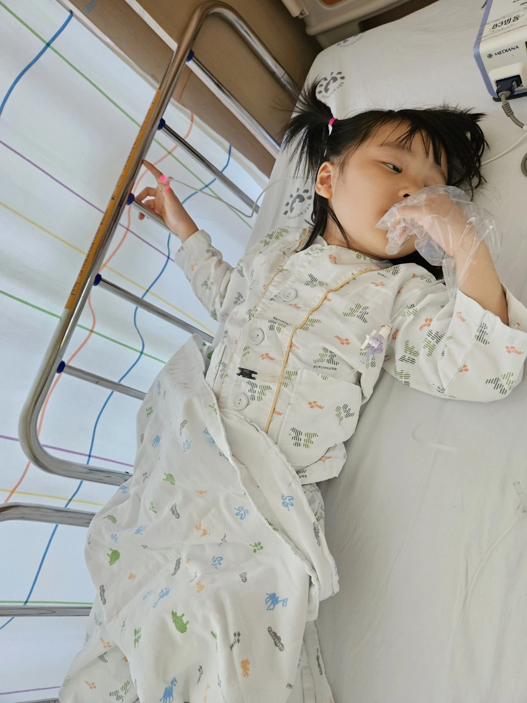 안녕하세요. 예설이 양부대 1박 2일 입원해서 척수항암 잘하고 왔습니다. 씩씩한 예설이 척수항암하고 누워서 4시간이나 있어야 했는데 잘 견뎌서 대견해요.