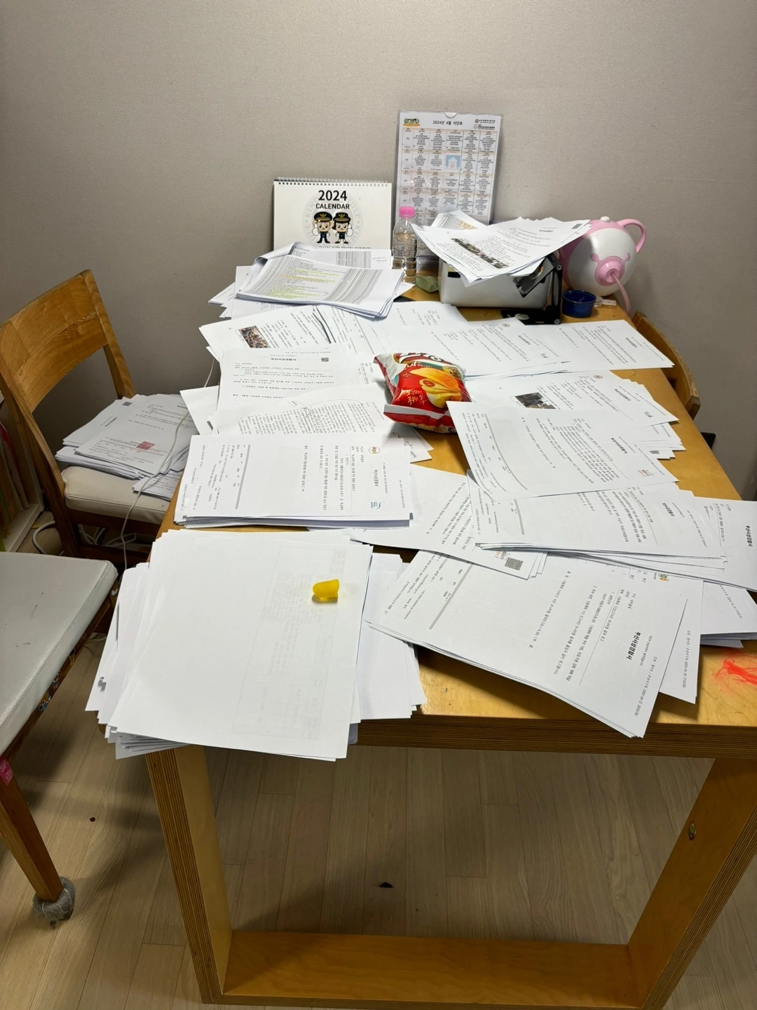 남편에게서 받은 서류를 집 테이블 위에 올려놓고, 시간 순서에 맞게, 부서에 맞게 다시 분류했다. 생각보다 이 시간도 오래 걸렸다. 아이들 아침 챙겨주고, 서류 분류하고, 점심 챙겨주고, 서류 분류하다 보니, 저녁 차릴 시간이 다가왔다. 서류 분류가 끝나고, 남편에게 아이들 식사를 부탁하고, 지구대로 향했다. 공적 조서를 작성하기 시작했다. 10장 가까운 조서를 치는 것도 3시간 이상 걸렸다. 일단 초안을 완성해서 집으로 돌아왔다. 아이들 재우고, 다시 여러 번 읽어보면서 고쳤다. 다음날 일찍 출근해서 공적 조서를 수정했다. 내가 수정하는 사이, 신 부팀장님께서 제출할 서류를 책으로 만들어주셨다. 그렇게 제출할 서류와 공적 조서를 10시까지 아슬아슬하게 완성할 수 있었다.