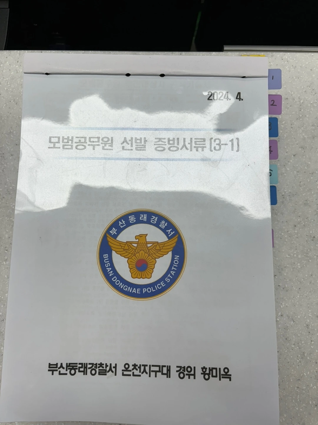 일단, 형광펜으로 프린트할 공문을 칠했다. 크게 부서로 나누었다. 여청계, 관광대, 지구대. 이 세 개의 부서에서 근무했던 공적으로 제출하기로 정했다. 나는 주말에 사무실로 출근해서 형광펜으로 칠한 공문 제목을 보면서 프린트하기 시작했다. 문제가 생겼다. 공문 프린트하는 시간이 내가 예상했던 시간보다 많이 걸렸다. 남편이 출근해야 해서 프린트를 다 하지 못하고 집으로 돌아갔다. 혹시 시간이 나면 공문 목차를 프린트해줄 수 있는지 남편에게 부탁했다. 남편은 자신의 휴게 시간을 반납하고, 제출할 공문을 프린트해서 다음날 나에게 주었다. 감동이었다.
