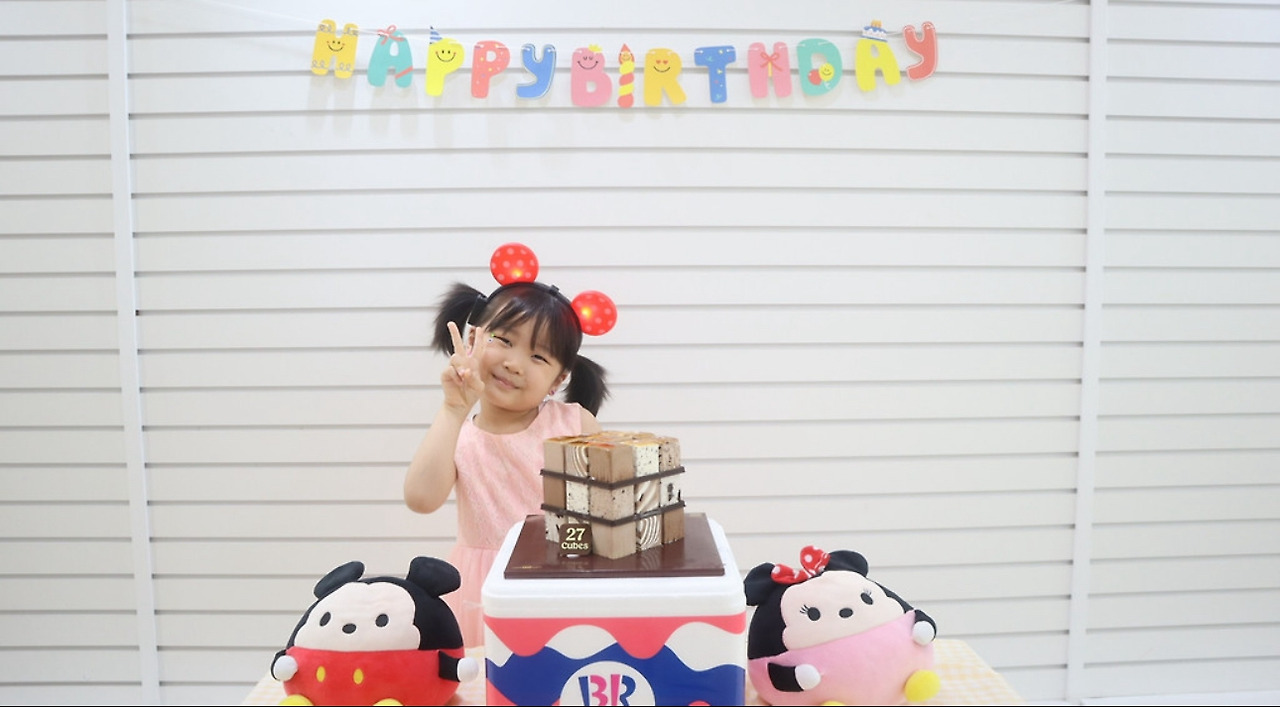 생크림이 들어간 케이크를 치료 때문에 못먹어서 베스킨라빈스 아이스크림 케익으로 오늘 챙겨줬습니다.