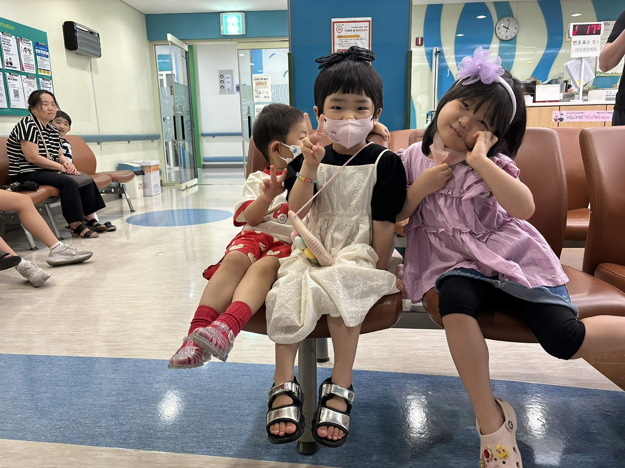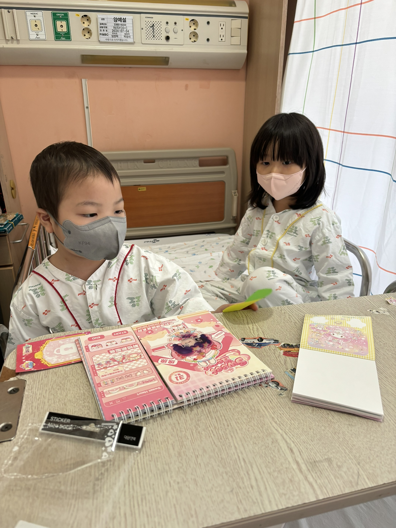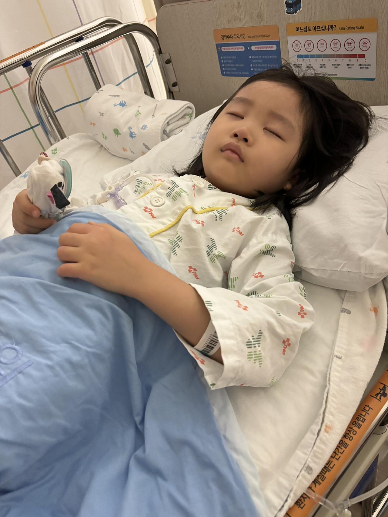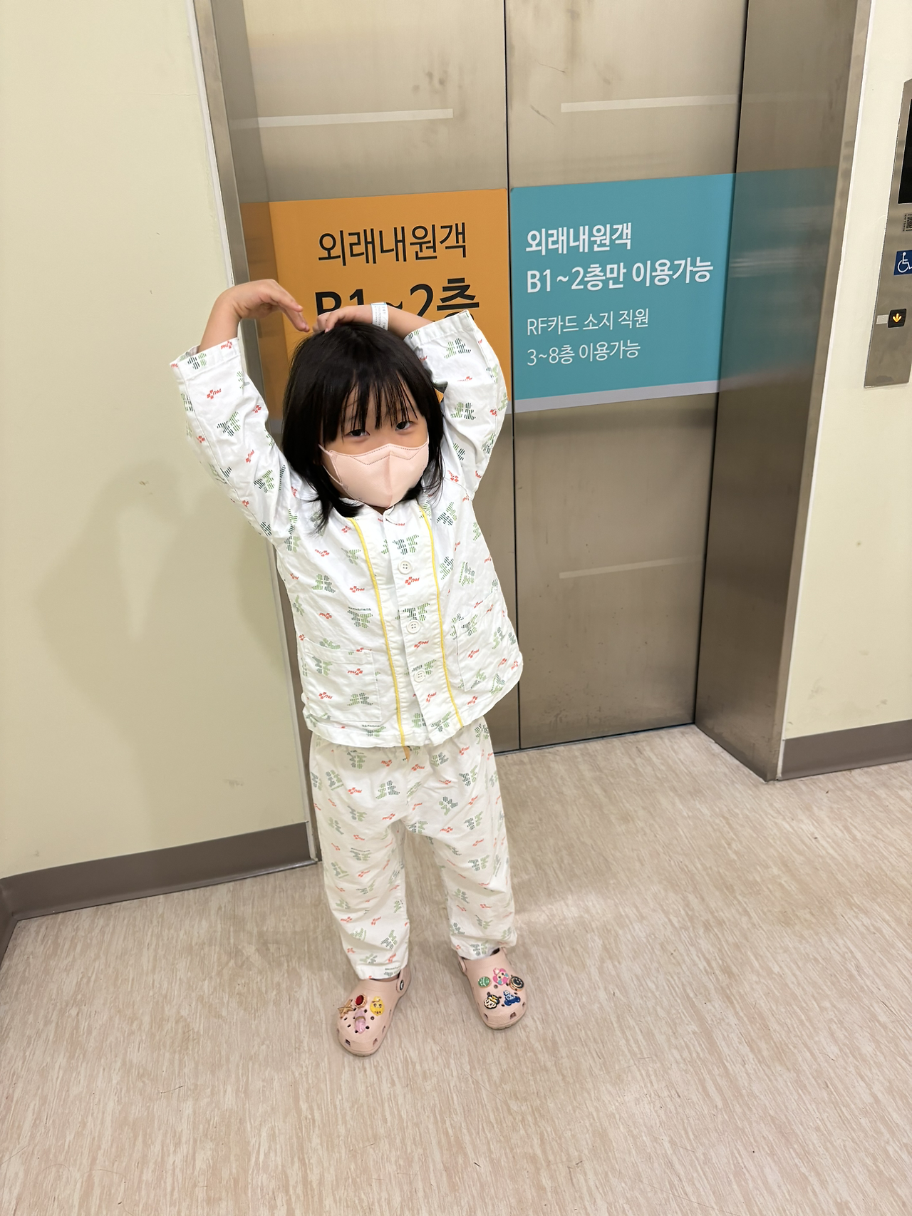 오랜만에 83병동을 오니까 엣날 생각도 나고 그렇네요. 예설이가 그동안 키도 몸무게도 많이 크고 자랐어요. 5세 병원복을 입으니까 예전에는 옷이 컸는데 지금은 작아졌어요. 오늘 케모포트 연결할 때 많이 울었지만 용기내어 치료해주어 너무 기특했어요. 내일 무진이랑 잘퇴원하고, 라윤이도 엉주 치료하고 퇴원할꺼라 믿어요.