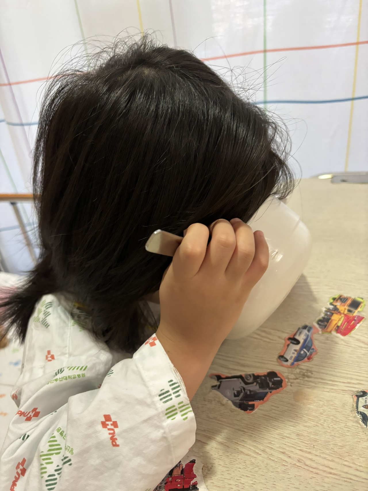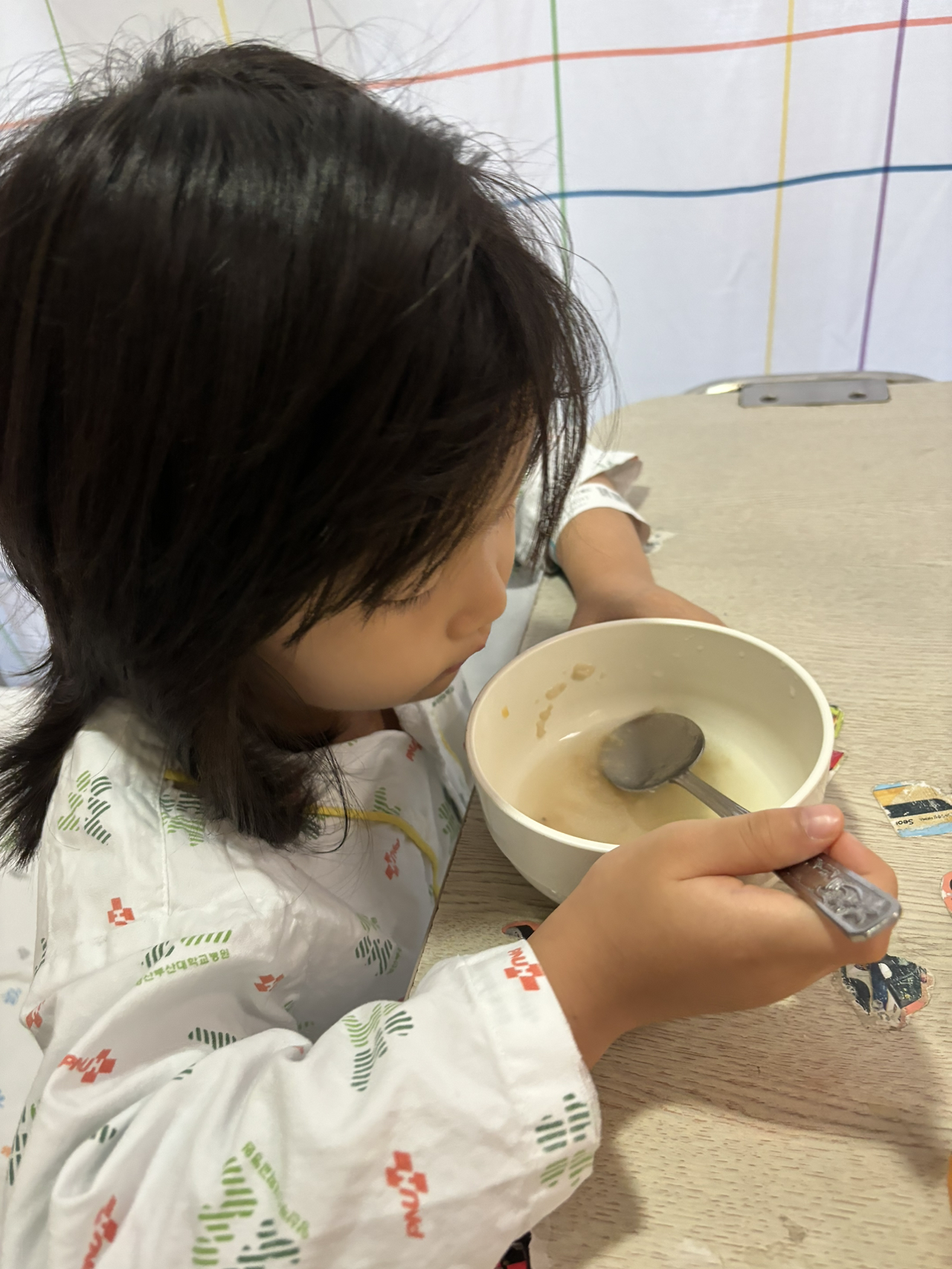 예설이는 83병동 올리가면 오전에 척수할 수도 있다고 하셔서 아침에 아무것도 안먹었어요. 오전 10시 30분에 올라와서 오후에 척수항암이 있을꺼라는 애기를 듣고 재빨리 귤 하나만 먹고 4시간 후에 척수항암 했습니다.