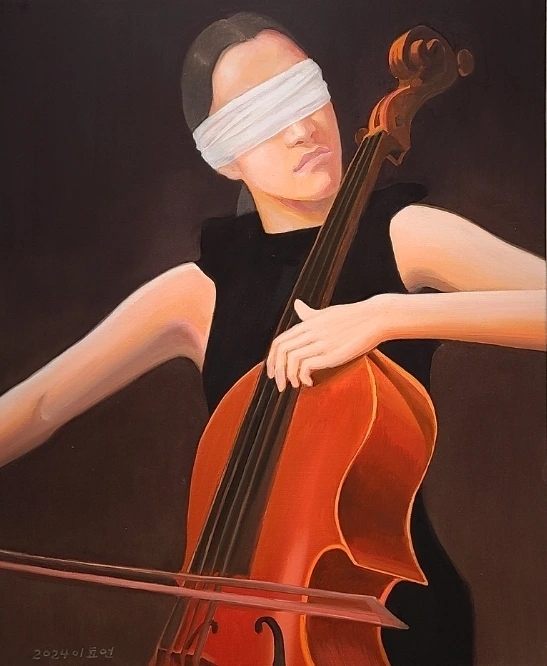 첼로, 72.7cm X 60.6cm, Oil on linen, 2024. 출처, 스페이스 수퍼노말.