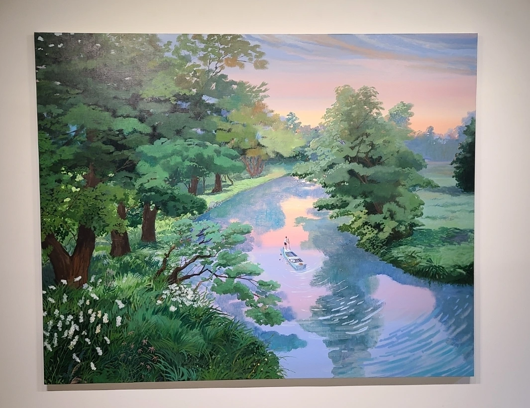 작품들은 거의 대부분 2024년 신작들이고 작품들을 보면서익숙함 속에 새롭고 낯선 풍경의 첨가라고 표현하고 싶었습니다. 왜냐하면 이지은 작가님이 그린 풍경은 저한테는 이 세상에 어디에도 없는 지상의 낙원처럼 느껴졌고, 안식처에 있는 사람들의 모습과 행동들은 저한테는 익숙해 보였습니다.