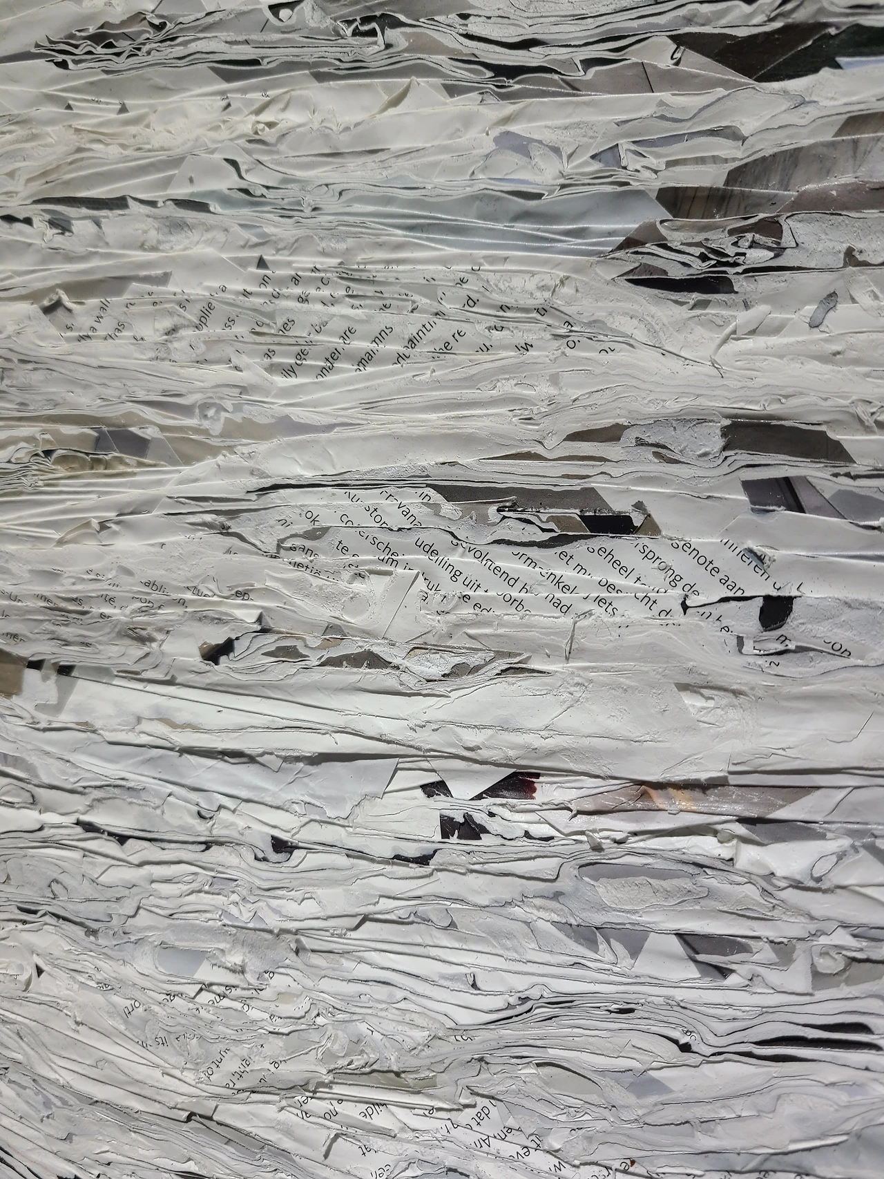 사실 종이라는 게 우리가 가장 많이 접하는 것 중에 하나이고 이미 인쇄가 된 종이들은 어쩌면 보잘것없는 것, 하찮은 것들이죠. 작가는 지속가능성의 개념을 도입하여 버려지고 간과되는 것들의 아름다움과 종이들이 응집하여 뿜어내는 에너지를 직관적으로 표현하는 점이 저에게는 매우 인상 깊었습니다.