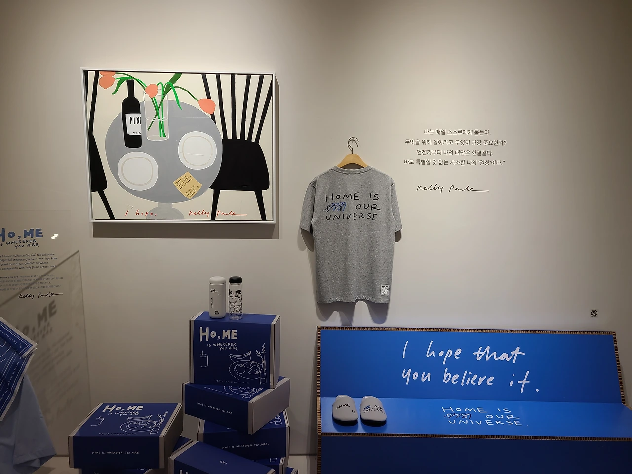 이번 전시에서는 켈리박 작가님의 신작 15여 점과 라이프스타일 브랜드 24/7과의 컬래버레이션 아이템도 함께 만나볼 수 있어요.