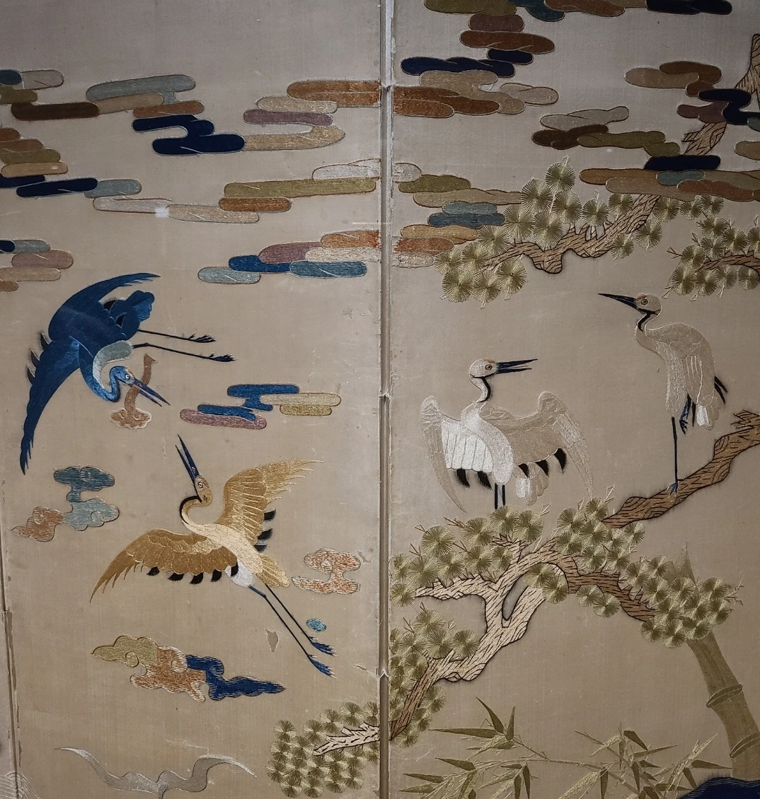 격식을 따져야 했던 시대라는 점을 감안해서 작품들을 보았을 때 확실히 유교사회이다 보니 주로 조상들에 대한 존경 그리고 행복한 부부 생활을 기원하는 의미를 동물들과 자연을 소재로 표현 한 점이 잘 연출되었어요. 특히 한쌍의 새들이 마주 보고 있는 모습과 병풍 두 폭씩 서로 마주 보는 형태가 안정감을 주는 게 인상 깊었습니다.