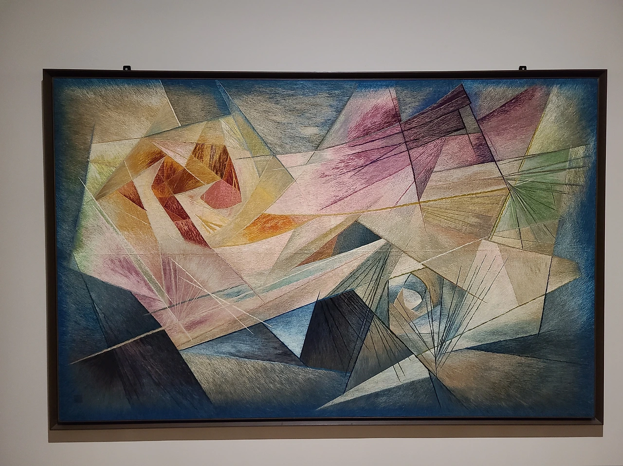 자수에 '큐비즘' 스타일을 넣었다는 점에서 그당시 트랜드가 있다는 것을 보여주었고, 섬세하고 사실주의적인 자수와는 차별성이 있어 보이는 작품이었습니다.