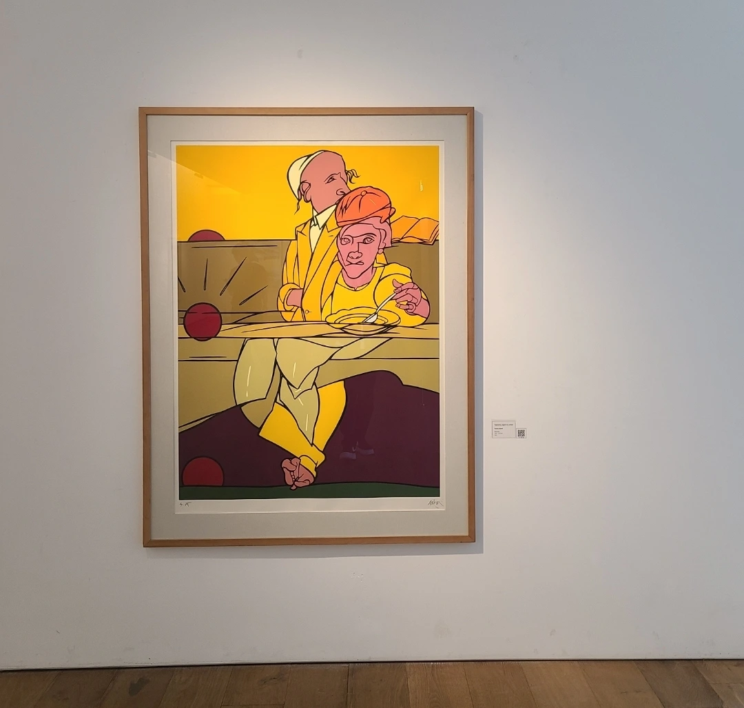 다음으로 제가 소개할 작가는 바로 이탈리아 출신 팝아트 작가 발레리오 아다미입니다. 사실 이 작가님은 과거에 세화미술관에서 열린 <미지의 걸작> 그리고 대구미술관에서 열렸던 <모던라이프>에서 먼저 접했던 작가인데요. 발레리오 아다미는 항상 거장들의 작품들을 감상하러 가면 꼭 보게 되는 작가님인 거 같아요. 예전부터 느꼈던 거지만, 작가님만의 특유한 색채감이 인상 깊었어요. 채도가 높고 순수한 원색 위주로 색을 사용하고 특히 중간색이나 혼색은 거의 쓰지 않습니다. 그래서 저는 색깔들이 자기주장을 너무 강하게 하고 있는 듯한 느낌을 받았어요. 역시 시선을 확 사로잡는 데는 강렬하고 원색만 한 게 없는 거 같습니다. 덕분에 제가 작가님을 기억하고 있는 게 아닌가 싶기도 하고요.