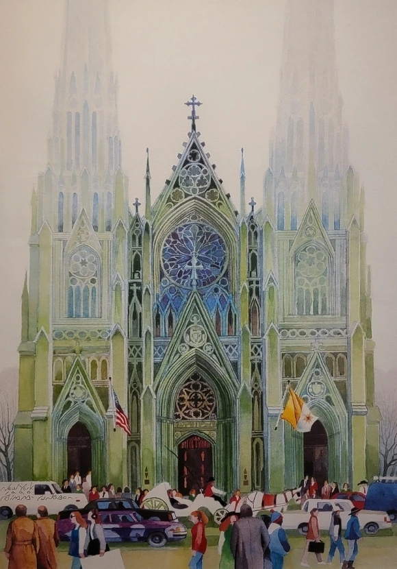 New York 59th ST & 5th Avenue (St. Patrick's Cathedral), 42cm X 57cm, Watercolor on Paper, 1990. 출처.