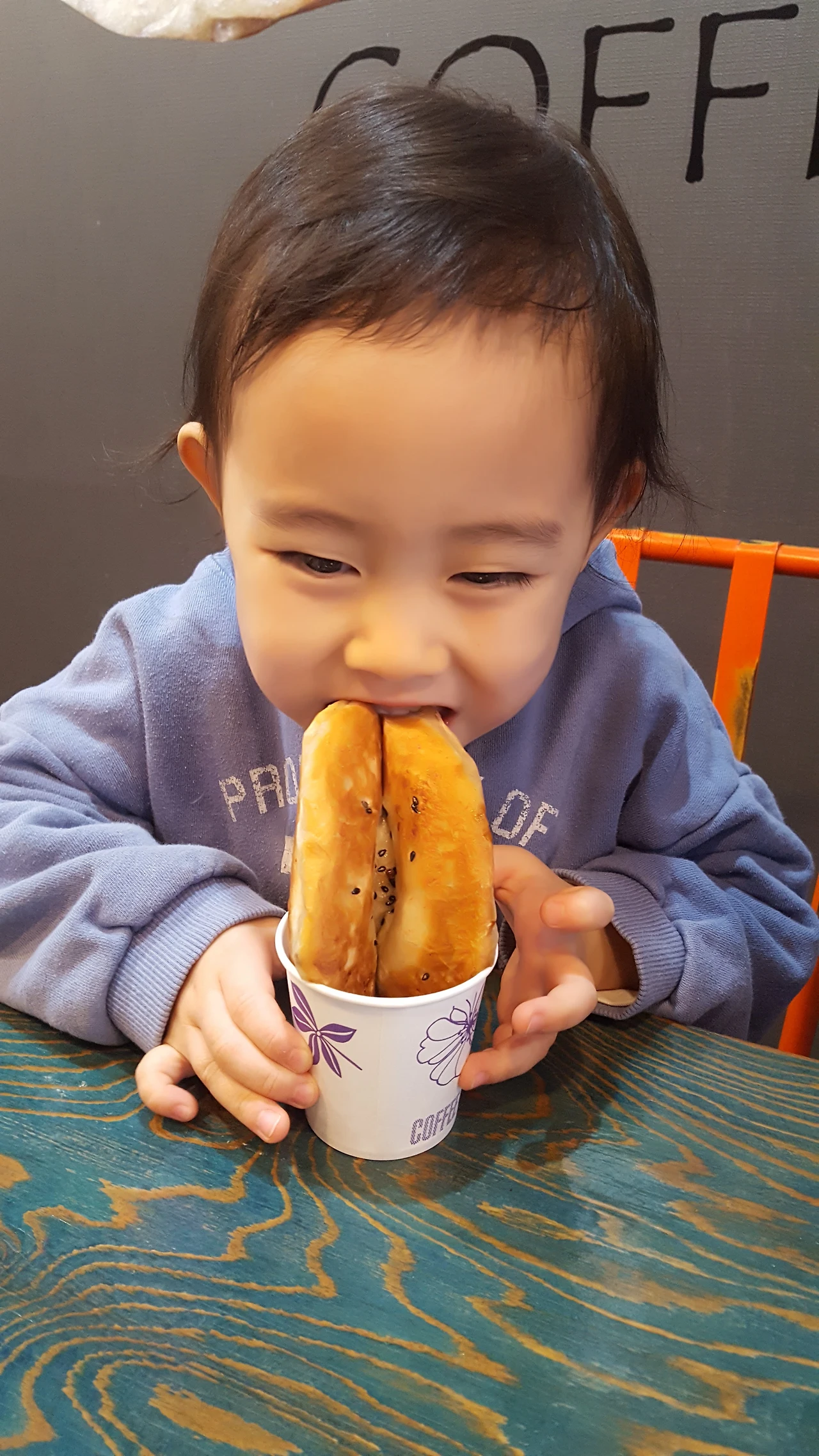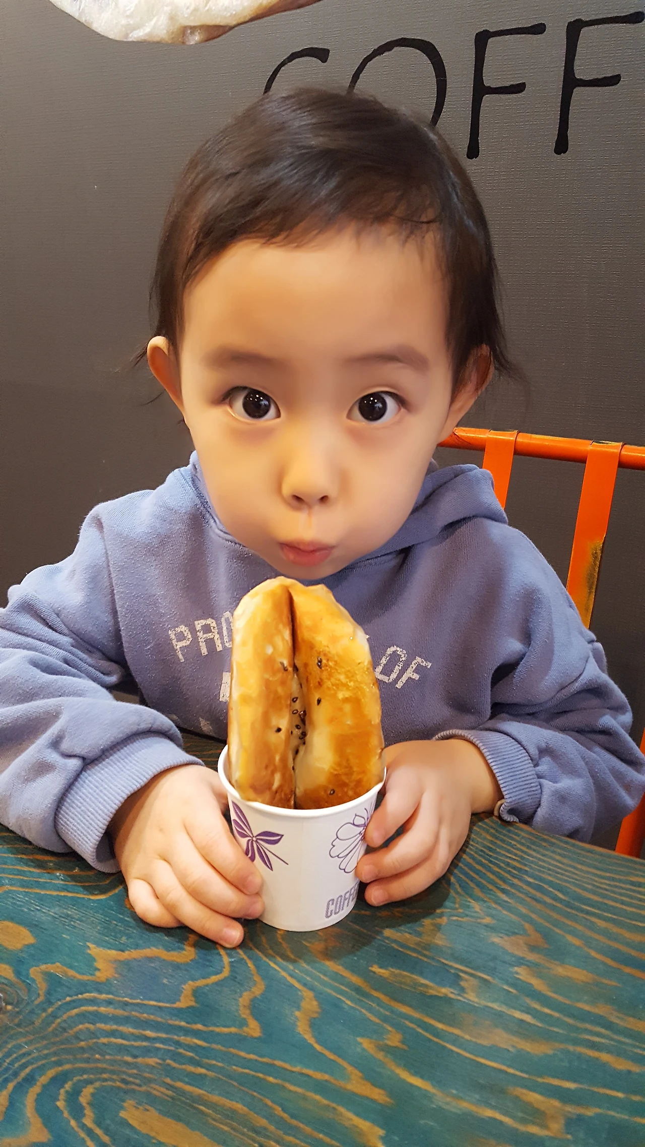 그중에서도 유독 선명하게 떠오르는 순간이 있다. 대전 노은동에서 먹었던 호떡이다. 이사한 지 얼마 되지 않아 동네를 둘러보다가 카페 같은 곳에서 호떡을 파는 집을 발견했는데, 그날 둘째는 아직 어려 차 안에서 잠들어 있었고 그동안 남편과 첫째, 나 셋이서 호떡집에 앉아 호떡을 먹었다. 그때 처음으로 호떡이 요리 같다는 생각이 들었다. 첫째가 처음 호떡을 먹으며 볼이 빵빵해지고 눈이 동그래졌던 순간은 사진으로 남아 있다.
