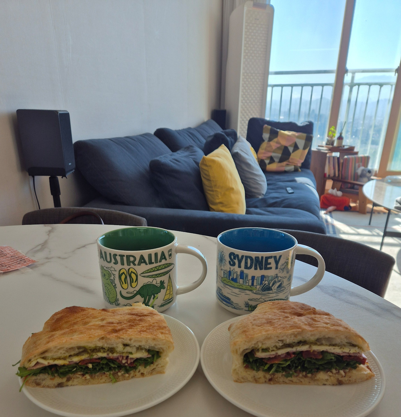그 샌드위치를 맛본 가족과 이웃들은 원래 나의 시그니처였던 (스타벅스를 따라한) 닭가슴살크랜베리샌드위치를 능가하는 맛이라며 엄지 척을 해주었다. 그날 이후 우리 집에는 치아바타와 바질페스토, 그리고 말린 토마토가 김치처럼 늘 준비되어 있다.