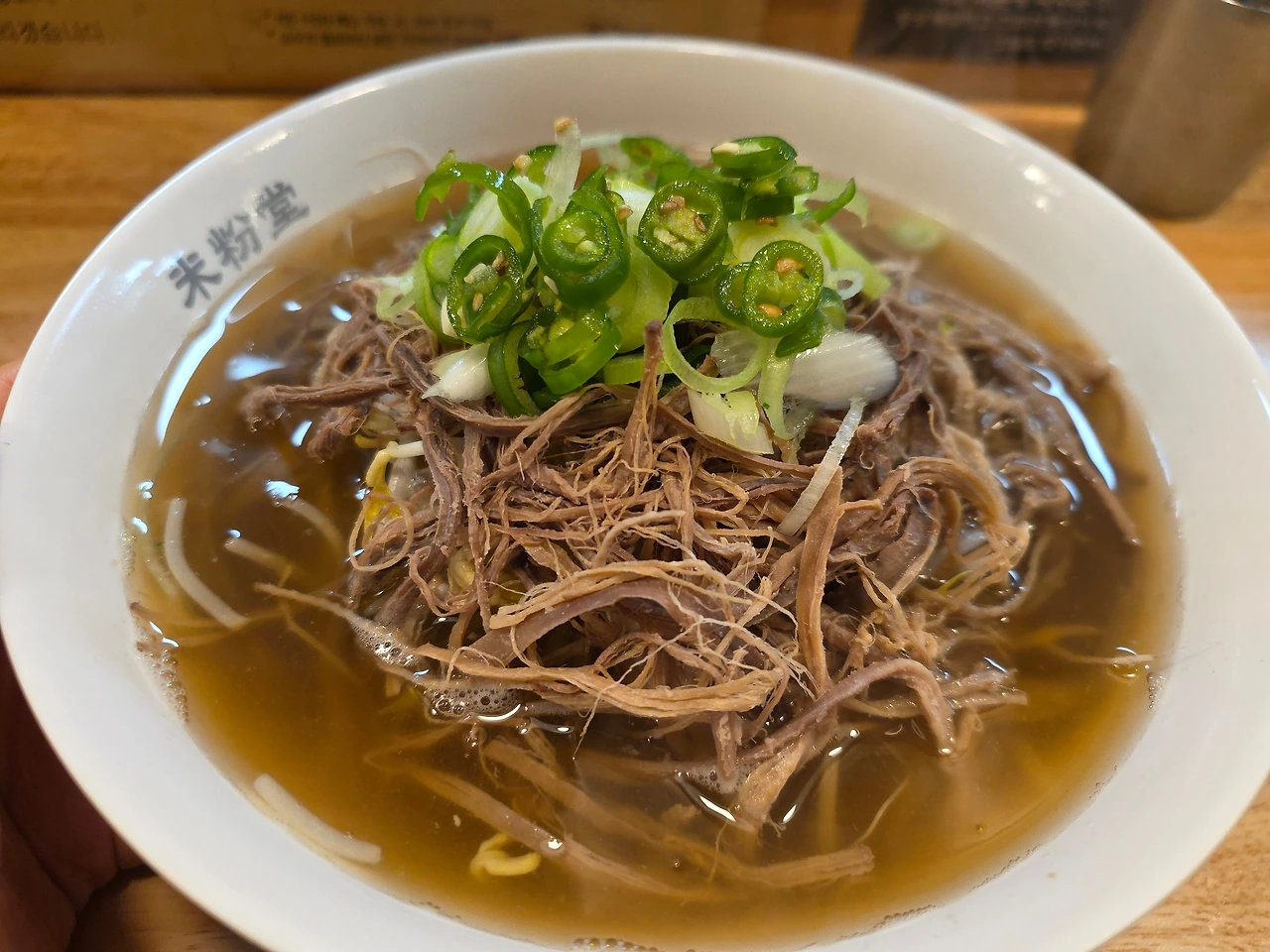 모처럼 남편이 쉬는 날, 아이들이 어린이집에 간 사이 일산에 가서 처음으로 그 집 쌀국수를 맛보게 되었다. 오랜만의 데이트여서도 좋았지만, 바 형식으로 나란히 앉아 조용히 먹는 분위기가 참 특색있게 느껴졌다. 무엇보다 인상적이었던 것은 그 집의 육수였다. 향신료를 많이 넣지 않아 한국적인 느낌으로 풀어낸 국물 맛이 좋았다. 잘게 찢은 양지와 면, 아삭한 숙주를 함께 먹는 맛도 훌륭했다. 그리고 얇은 면을 오래 먹기 힘들어하던 나에게 핫소스와 해선장을 섞어 찍어 먹는 방식은 국수 맛을 더욱 배가시켜 주었다. 그날 이후 나는 그 쌀국숫집의 단골이 되었다.