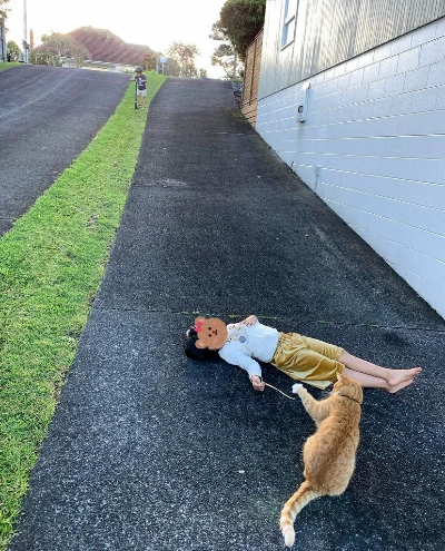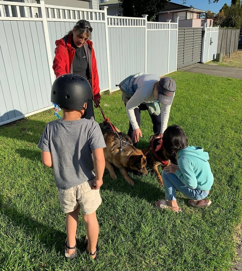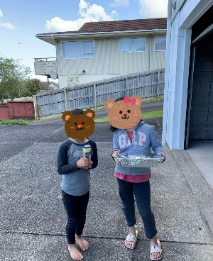 반려견과 매일 산책하는 친절한 키위 아주머니와 아이들이 밖에서 노는 시간이 잘 맞지 않아 며칠 동안 만나지 못한 적이 있다. 아주머니께서는 우리 집 문을 두드리셨다. 그동안 아이들이 안 보여 무슨 일이 있는지 걱정되어 젤리 한 봉지를 건네며 아이들의 안부를 물었다. 고마운 마음에 집 안으로 들어오시게 해 뒷마당에서 물풍선을 던지고 노는 아이들의 모습을 보여드리니 키위 아주머니의 반려견도 반가워 꼬리를 마구 흔들었다.