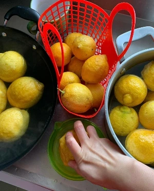 오늘도 어김없이 동네가 떠나가라 소리치며 노는 아이들에게 옆집 아주머니께서 집의 레몬나무에서 노랗게 잘 익은 레몬이라고 집으로 가져가 레모네이드를 해 먹으라 했다며 아이들이 품에 한아름씩 안고 왔다.