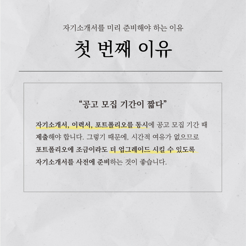 "자기소개서를 미리 준비해야 하는 가장 첫 번째 이유"