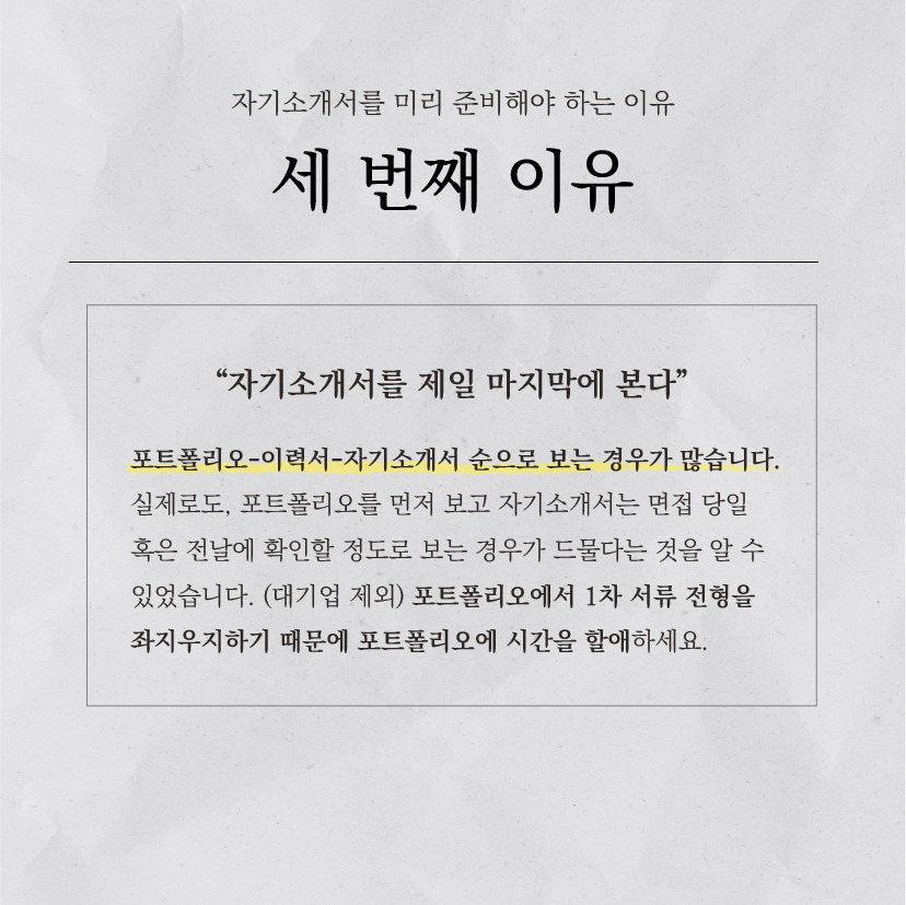 "세 번째 이유는 자기소개서를 제일 마지막에 본다입니다."