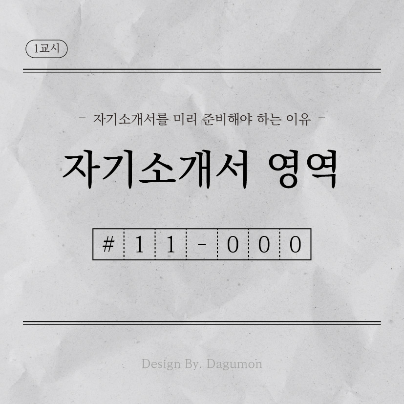 오늘은 우리가 디자인 회사에 들어가기 전에 꼭 제출해야 할 서류인 "자기소개서 작성"에 대해서 말씀을 드리려고 합니다. 자기소개서는 미리 1차적으로 준비하는 것이 좋습니다. 그 이유는, 어느 회사에 들어가냐에 따라 달라질 수는 있지만, 요즘은 수시 채용으로 고용하는 경우도 많고 포트폴리오와 자기소개서를 공고 기간에 맞추어 제출하는 것이 어렵다고 느껴졌기 때문에, 자기소개서는 미리 준비하는 것이 좋다고 생각이 들어 블로그 포스팅을 하게 되었습니다.