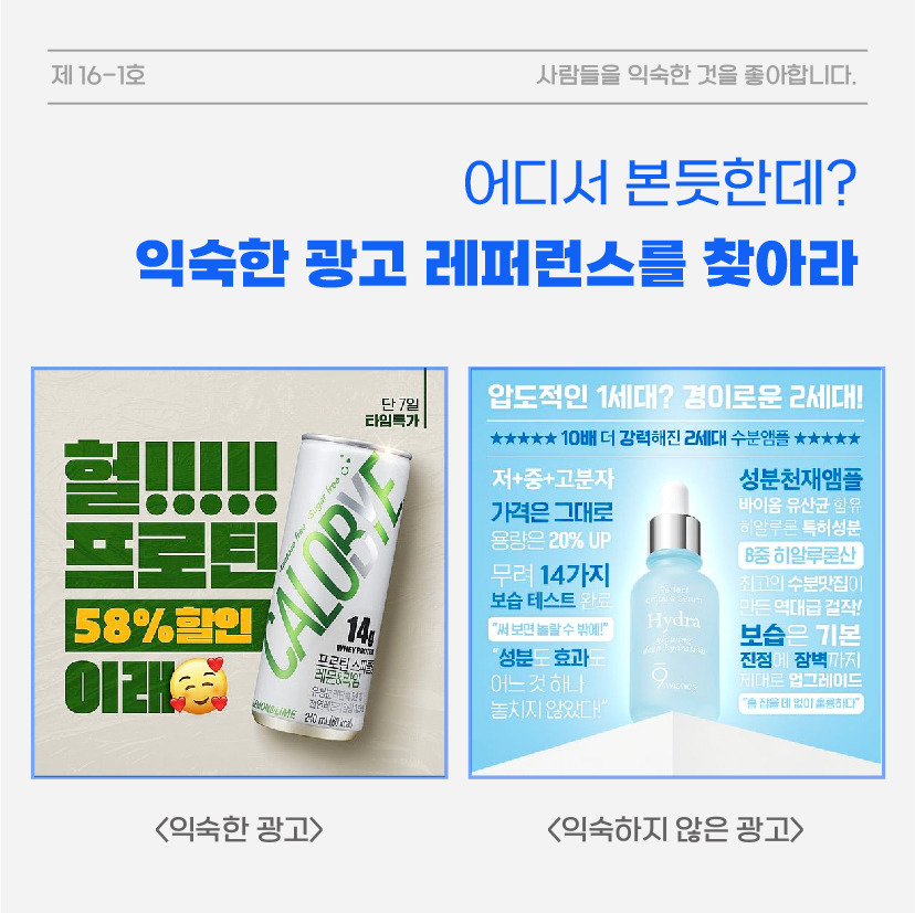 광고 컨텐츠를 만들 때 중요한 것은 익숙한 광고 레퍼런스를 모방하는 것입니다.