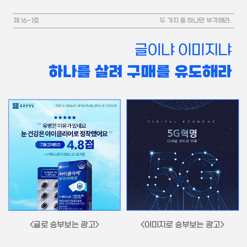 글로 승부를 볼 것인지 이미지로 승부를 볼 것인지를 정해야 합니다.