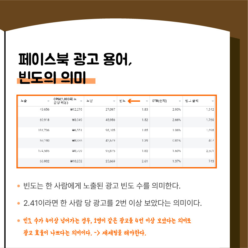 빈도 수가 "4"라는 숫자로 넘어가게 되면, 1명이 광고를 4번 이상 노출이 되어 보았다는 의미로 광고를 다시 재세팅을 하는 것이 좋습니다.