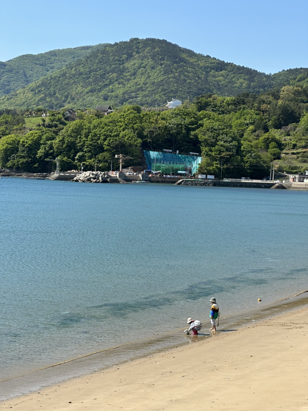 다음날 아침 일찍 아이들이 방문을 열고 들어오는 소란에 잠이 깼다. 몇 신지 물어보니 8시도 되지 않은 시각, 이미 할머니와 아이들은 해변 산책을 마치고 돌아온 것이다. 해변을 향해 있는 통창문을 활짝 열어젖히니 말 그대로 바다가 반짝거리고 있었다. 언제 그런 무거운 비가 내렸느냐는 듯 투명한 햇빛이 내리쬐는 청명한 아침이었다. 숙소에 대한 모든 불만과 불안이 어디론가 사라졌다. 모든 것이 용서되는 공기와 풍경이었다. 엄마가 부엌 집기들을 모두 씻고 소독해서 아침을 차려주시고, 아이들은 그동안 밖에서 뛰어놀았다. 부모님이 어제 오는 길에 사 오신 전복을 볶은 정갈한 반찬과 아이들이 좋아하는 콩나물국으로 아침식사를 했다.