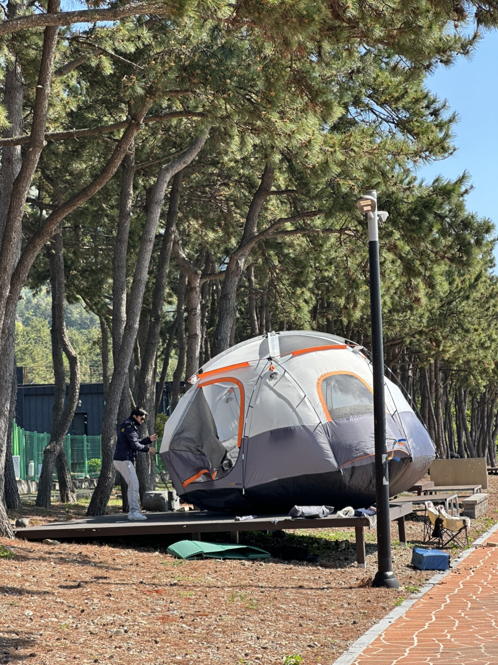 아침을 다 먹고도 8시 반, 남동생이 설거지를 하는 동안 아빠와 준영은 해변 캠핑장에 텐트를 쳤다. 회사 동료가 쓰던 텐트를 그냥 거저 준 것인데 크기가 너무 커서 적어도 성인 어른 둘은 같이 쳐야 했다. 이렇게 큰 텐트를 처음 쳐보는 아빠와 준영은 거진 한 시간 만에 완성한 텐트를, 다시 접기로 했다. 강풍이 불어 폴대를 두 개나 분질러먹고, 여러 번 텐트가 거대한 공처럼 바람이 가득 차 바다로 날아가버릴 뻔한 위기를 겪은 뒤였다. 둘 중 한 명이 온 힘을 다해 붙잡지 않았으면 한 명은 텐트와 함께? 텐트를 타고? 날아갈 뻔한 강풍이었다. 이 실패로 손주들과 캠핑을 하고 싶었던 할아버지의 로망이 좌절되었다. 아빠는 손주들을 보면서 우리 남매 어렸을 때를 한번 더 살고 싶어 하는 것 같다. 이번 여행에도 코펠이며 캠핑테이블, 의자 등 아빠의 애장품인 온갖 캠핑용품들을 총동원하셨다. 할아버지 가방에서 끝없이 나오는 캠핑용 위스키잔, 주걱, 한쪽 끝은 포크 다른 한쪽 끝은 숟가락인 도구 같은 처음 보는 물건들에 아이들은 신이 났다. 여하간 텐트 치기에 실패하는 바람에 종종 캠핑을 다녀보려 했던 우리의 의욕도 크게 꺾였다.