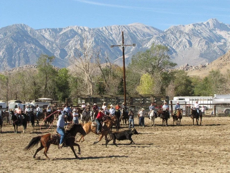 엘에이 출발 기준, 5번 북쪽 방향으로 프리웨이를 타고 가다가 14번 국도 북쪽 방향으로 갈아탄 후 국도 395번을 만나면 북쪽으로 달린다. LA에서 210마일 정도 거리인 이곳은 3시간 30분 정도면 도착할 수 있다. 이스턴 시에라 단풍을 보러 갈 때 첫 번째 쉬는 장소가 이곳인데, 보통 새벽에 떠나면 여기 맥도날드 햄버거 집에서 아침식사를 해결하게 된다. 식사 후 밖으로 나가면 휘트니 산이 위풍당당하게 서있다. 나무 하나 볼 수 없는 뾰족한 바윗덩어리 산을 보고 있노라면 위풍당당을 넘어 범치 못할 위협감마저 드는데, 엘에이에서 등산을 좋아하는 이들에게는 죽기 전 정상 정복이라는 결심을 다지게 하는 산이다. 갔던 날 때마침 로데오 경기가 벌어지고 있었다. 한 시간 정도 카우보이들이 말 타고 줄을 머리 위로 돌리며 송아지를 낚아채는 로데오를 구경하는 기회도 가졌다.