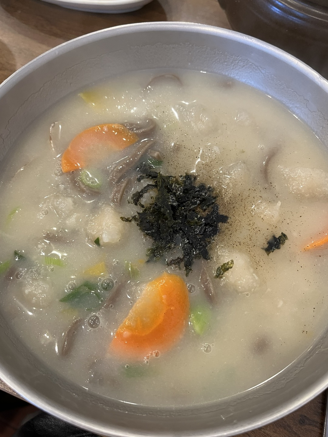 그 후로 종종 감자옹심이가 떠올랐다. 대전에는 쉽게 찾아볼 수 없었는데 서울엔 감자옹심이를 파는 곳이 은근히 많았다. 강원도랑 가까워서 그런 걸까. 얼마 남지 않은 백수의 시간이 아까워 옆동네인 쌍문동을 둘러보고 오는 길에 감자옹심이를 파는 가게를 발견했다. 버스정류장 바로 앞에 있는 가게였는데 간판을 보자마자 본능적으로 하차벨을 눌렀다. 저녁 시간이 가까워지는데도 식당 안에 사람이 별로 없었다. 주인은 손님이 반가워 보였다. 과분한 환대를 받고 자리에 앉았다. 세련되지 않은 내부를 보니 마음이 탁 풀렸다. 배고프다고 느낄 새도 없이 걸어 다니느라 허기를 알아채지 못했다가 메뉴판을 펼치는데 꼬르륵 소리가 났다. 저번처럼 감자옹심이칼국수를 먹으려다 엄마처럼 '옹심이만'을 주문했다. 뒤이어 옹심이가 세숫대야만 한 그릇에 가득 담겨 나왔다. 우연히 찾아온 손님을 놓치지 않으려는 전략인지 원체 인심이 푸짐한 건지 알 수 없었지만 나야 땡큐였다. 다 먹을 수 있을까 걱정도 잠시. 어느새 마지막 옹심이를 아쉬워하며 삼키는 나를 발견했다. 국물까지 다 마시자 직감이 왔다. 너, 나의 새로운 소울푸드가 돼라.