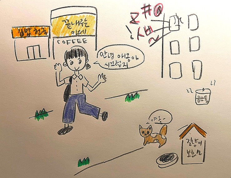 아무리 예쁜 옷이라도 마네킹만 입을 수 있는 옷은 옷이라고 할 수 없다. 밥 먹다가 양념도 좀 흘리고, 체취도 배고, 목도 쪼글쪼글 늘어나야 옷이라고 할 수 있지 않을까? 내가 발 디딜 곳도 그랬으면 한다. 골목에 음식물 쓰레기 냄새가 조금 풍기더라도 아무도 길냥이들을 해치지 않고 옆집에서 사랑싸움을 하는 소리가 종종 들리더라도 참치김밥이 유난히 맛있는 김밥천국이 있는 그런 사람냄새가 풍기는 곳이었으면 하는 바람이다.